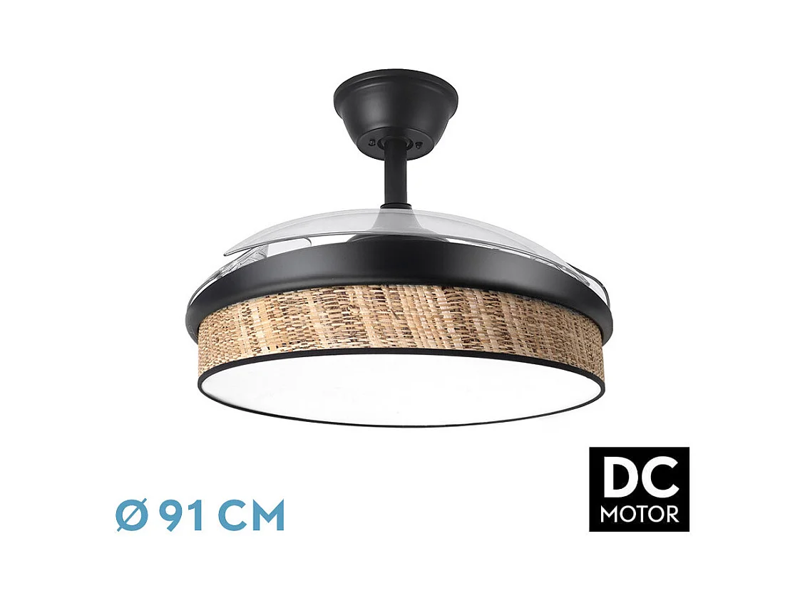 Ventilador DC Moda negro/cañizo claro LED 91 cm con mando