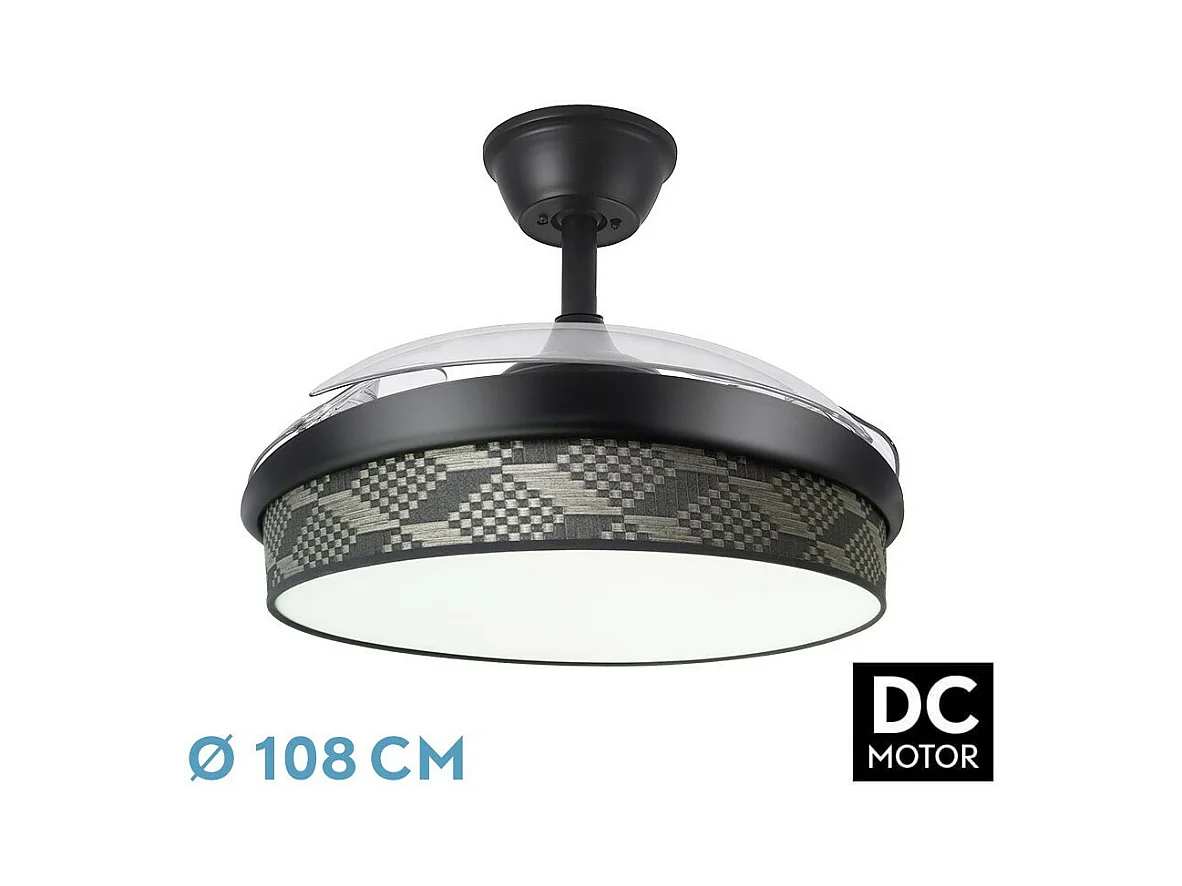 Ventilador de Techo Retráctil Silencioso Kourak Negro 106cm Motor DC Negro Seleccionable (Cálido-Neutro-Frío) Mando RF Wifi: