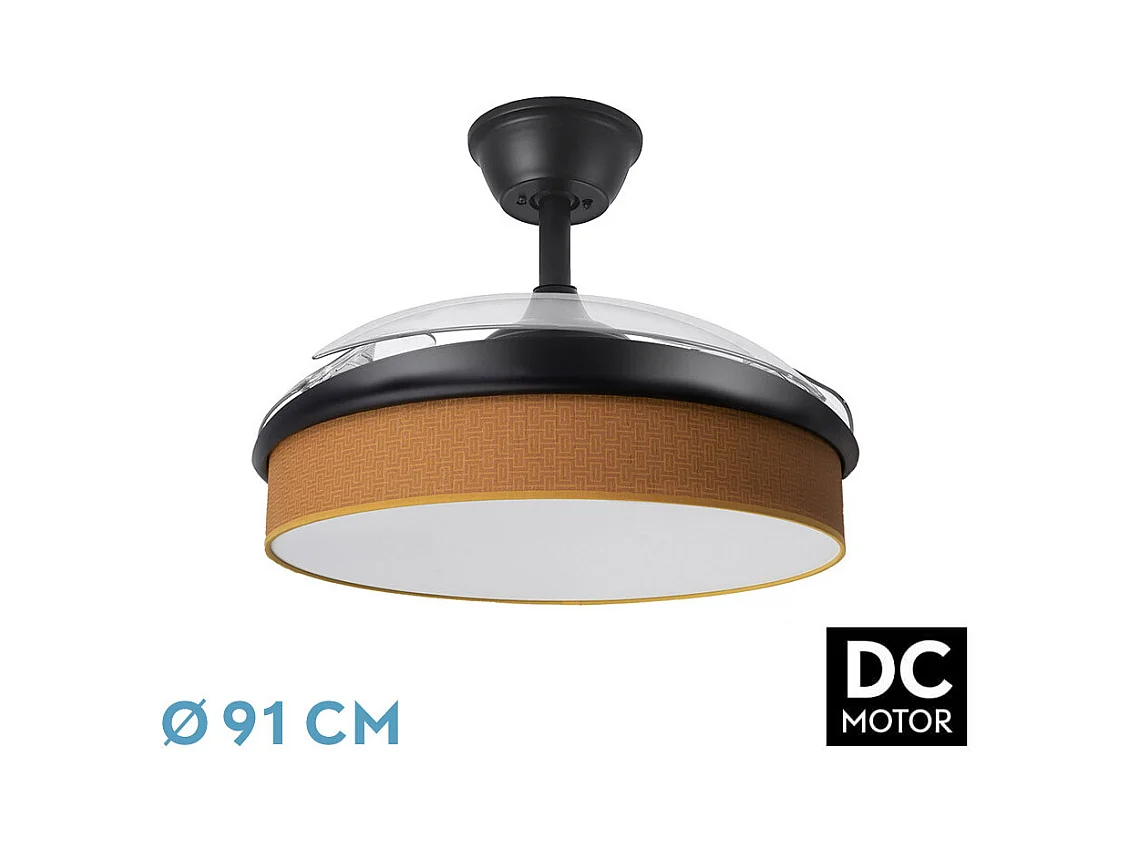 Ventilador DC Moda negro/amarillo LED 91 cm con mando