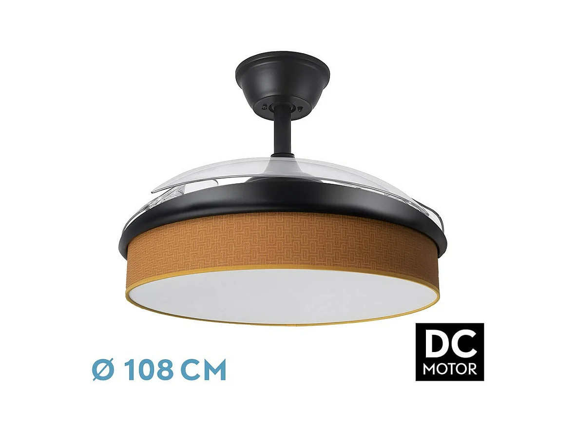 Ventilador de Techo Retráctil Silencioso Kourak Negro 106cm Motor DC Negro Seleccionable (Cálido-Neutro-Frío) Mando RF Wifi: