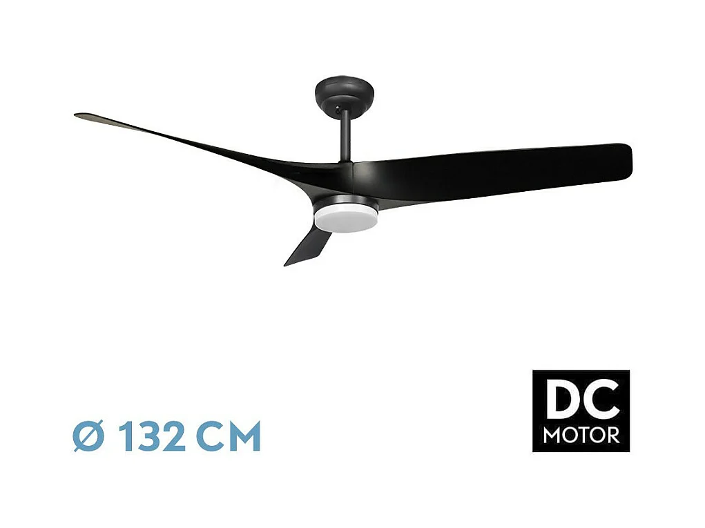 Ventilador Dc Cairo Negro Led Integrado Con 3 Posiciones