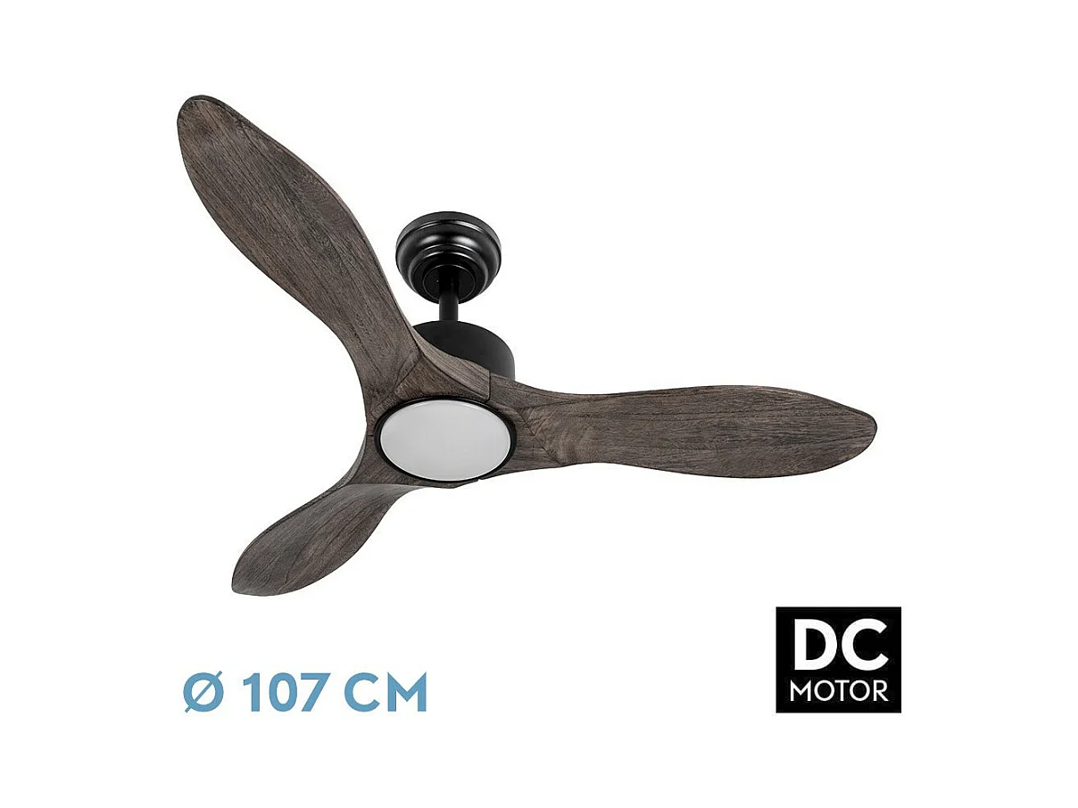 Ventilador Dc Kavala Negro Roble Led Mando Distancia Cct Regulable