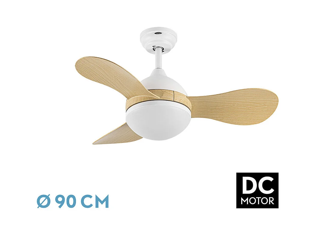 Ventilador DC Solido blanco/haya LED 24W con 3 aspas y mando