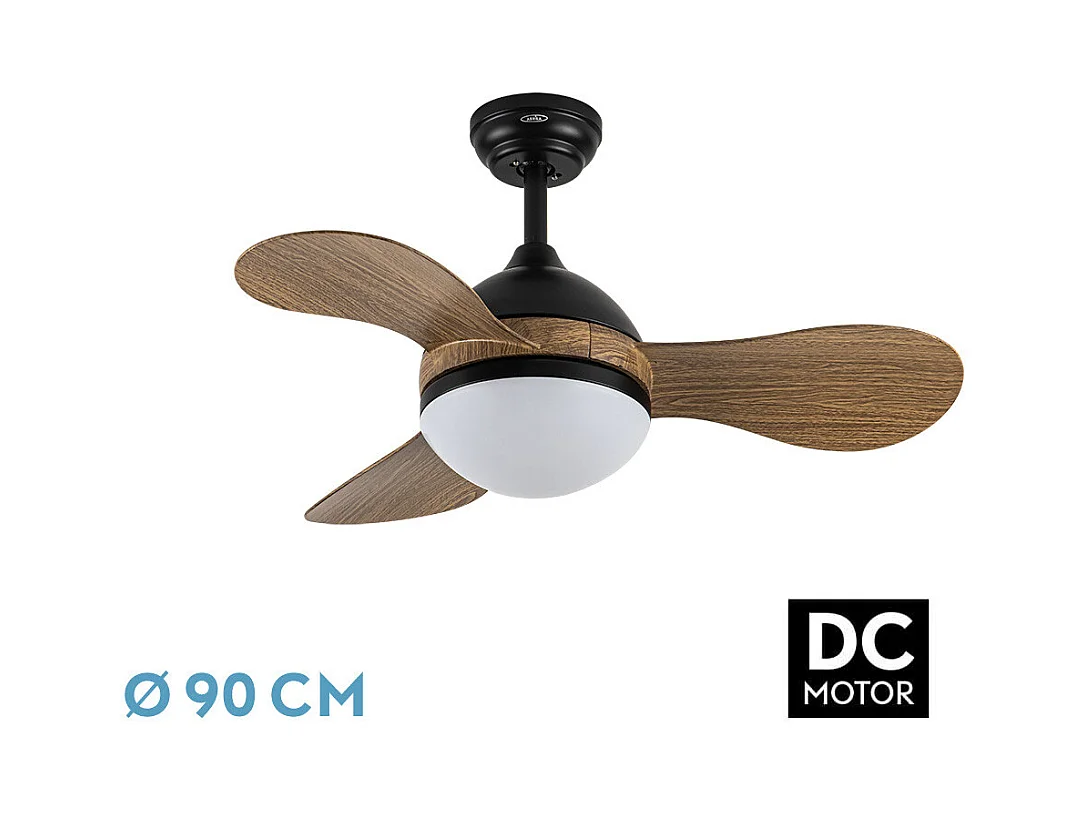 Ventilador DC Solido negro/madera LED 24W con 3 aspas y mando