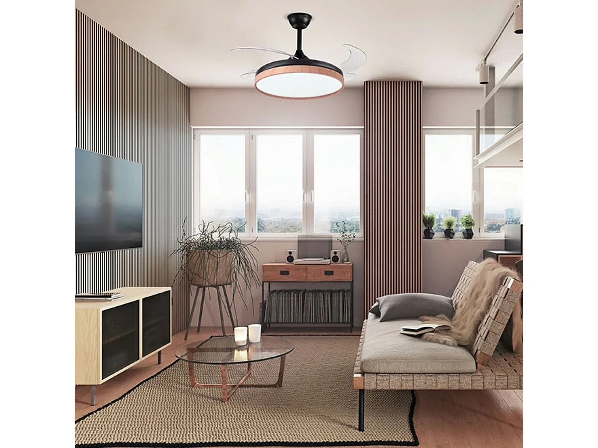 Ventilador de techo Cosmos Mini Bel Air 48W 4 aspas retráctiles negro/madera Ø91 cm