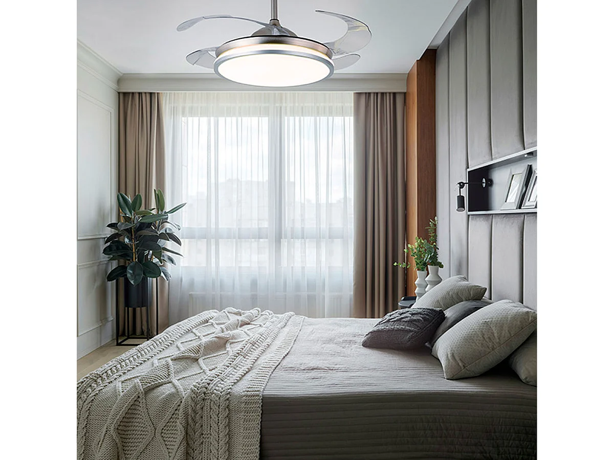 Ventilador de techo Dune Bel Air 72W aspas retráctiles mando a distancia inox Ø108 cm