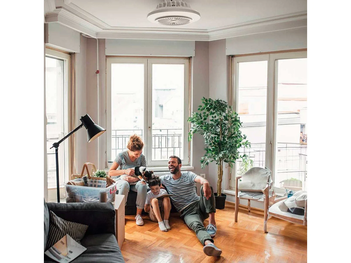 Plafón ventilador Tristán Helios Home 36W luz LED 3 velocidades + control remoto blanco Ø53x22 cm