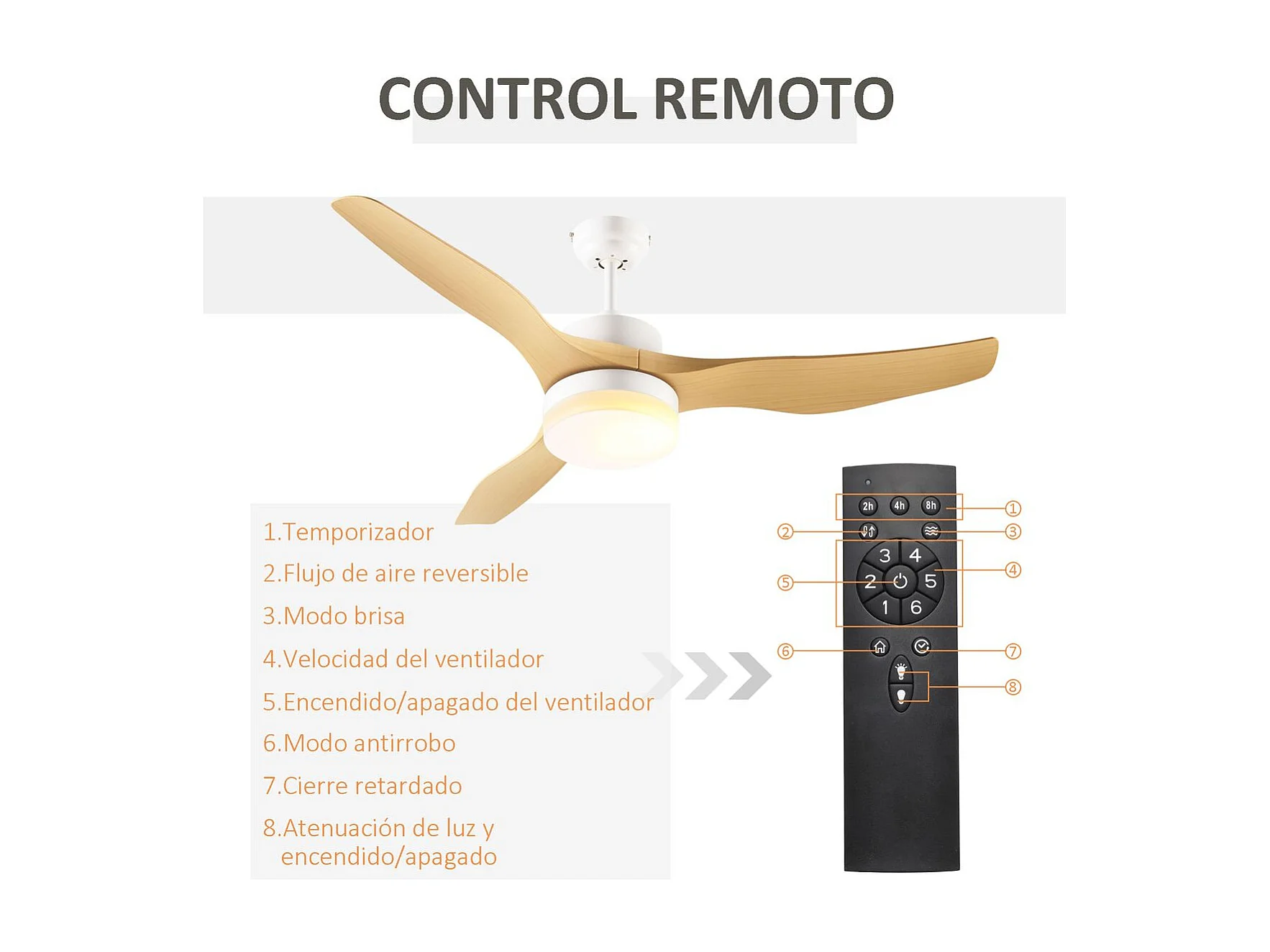 Ventilador de techo Rafia Homcom 20,5 W 3 aspas reversibles blanco/natural Ø132 cm