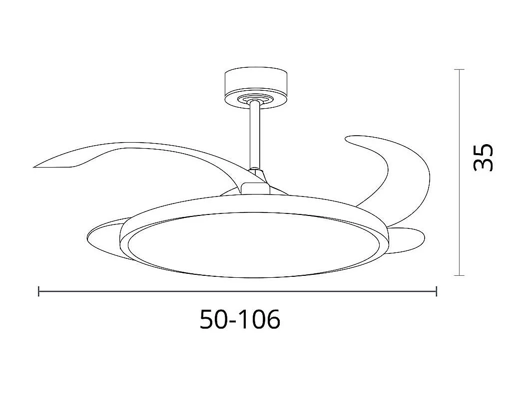 Ventilador de techo Akran Bel Air 72W 4 aspas retráctiles con luz LED negro Ø108 cm