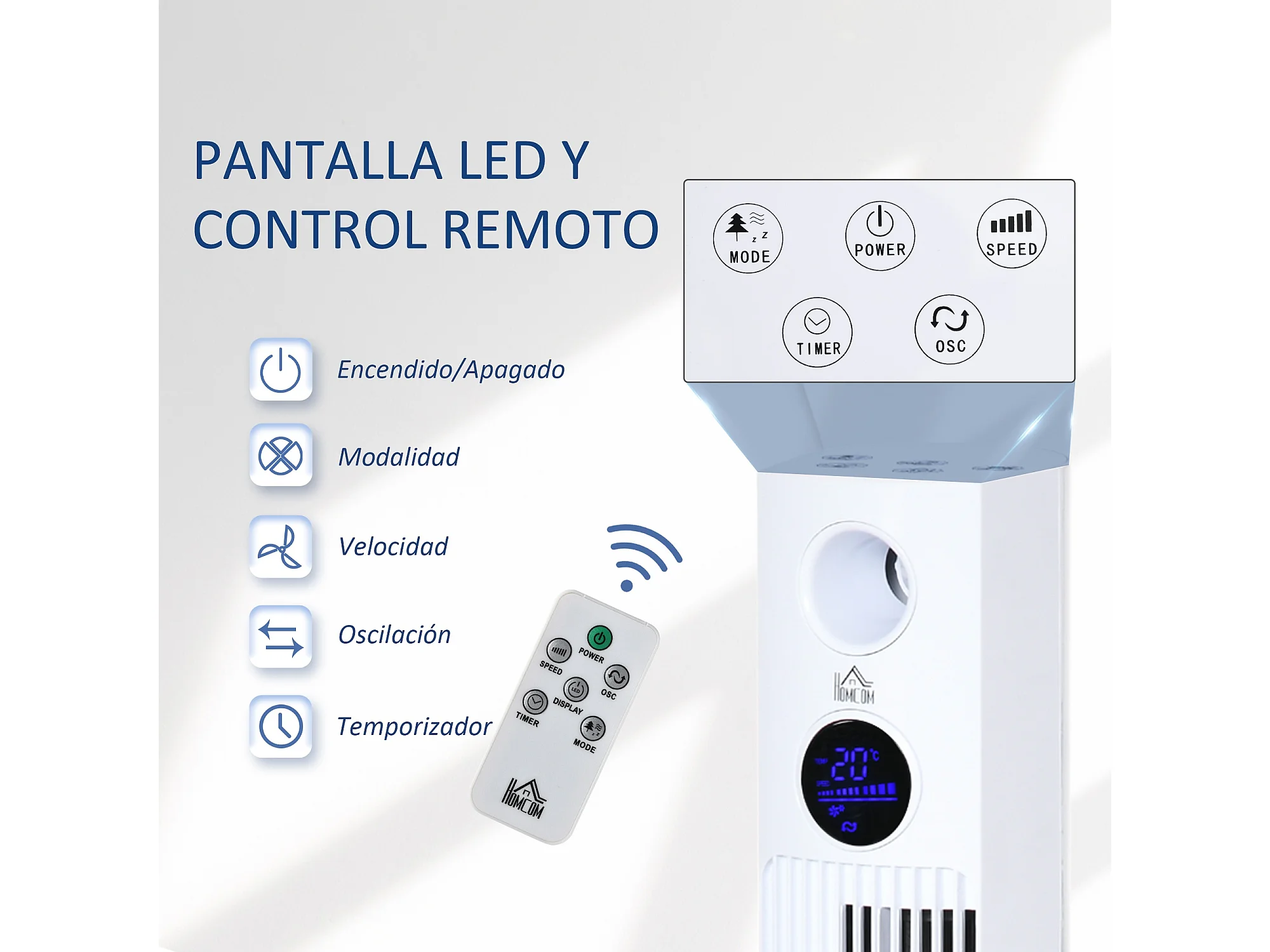 Ventilador de torre blanco 31.5x31.5x96 cm HOMCOM