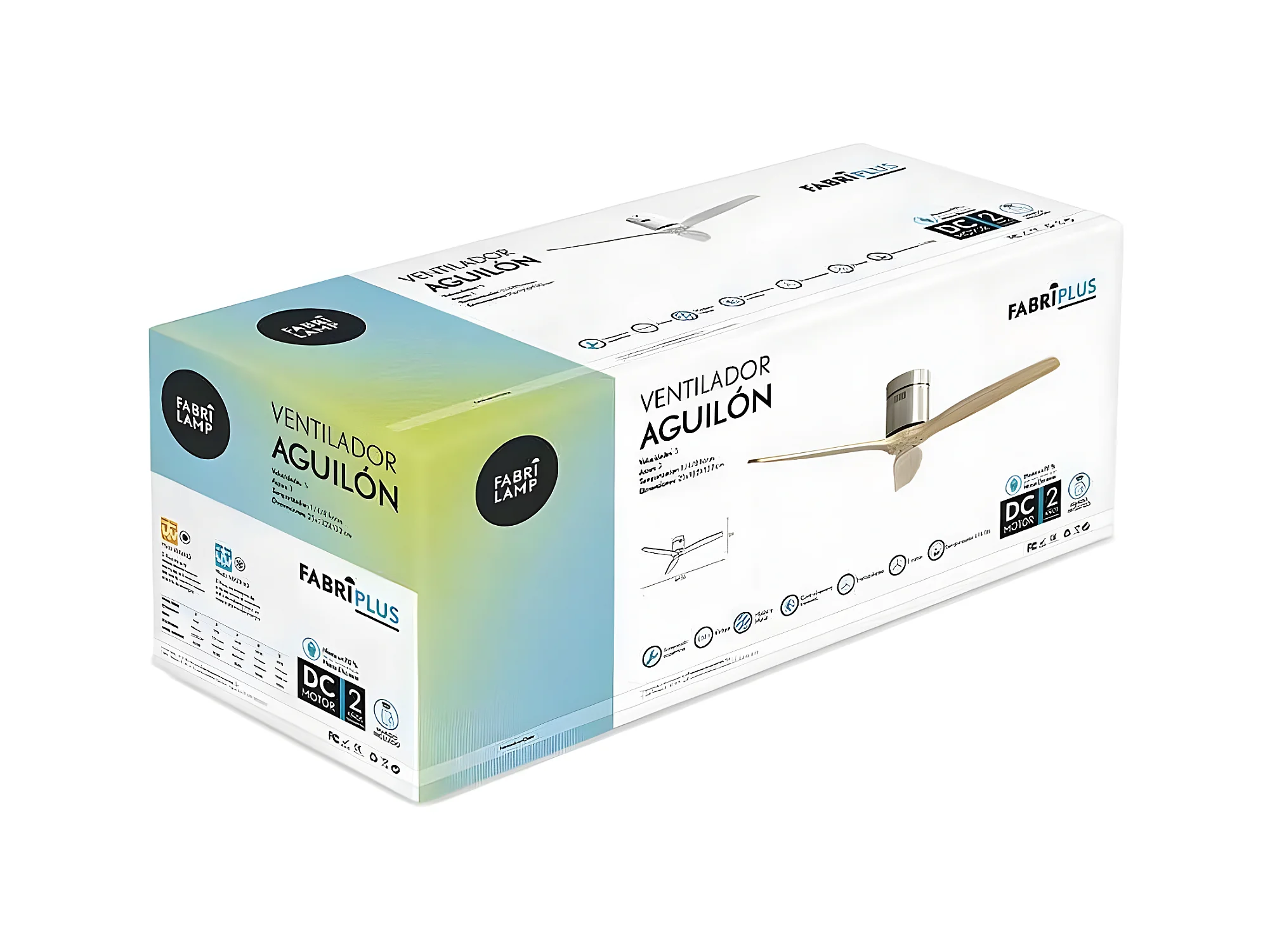 Ventilador Dc Aguilon Niquel Haya Sin Luz Control Remoto Y Temporizador