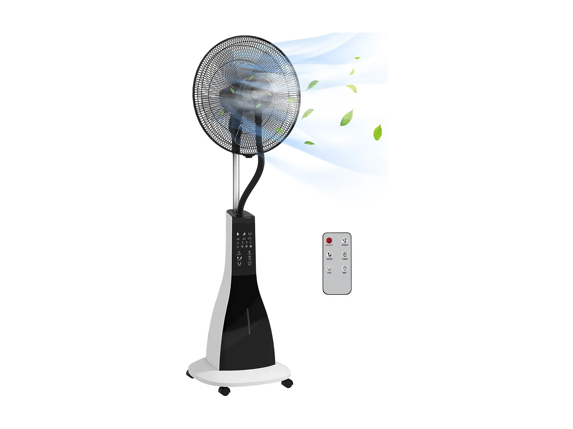 Ventilador nebulizador Big Homcom 90W 3 velocidades + 5 aspas blanco/negro 120 cm