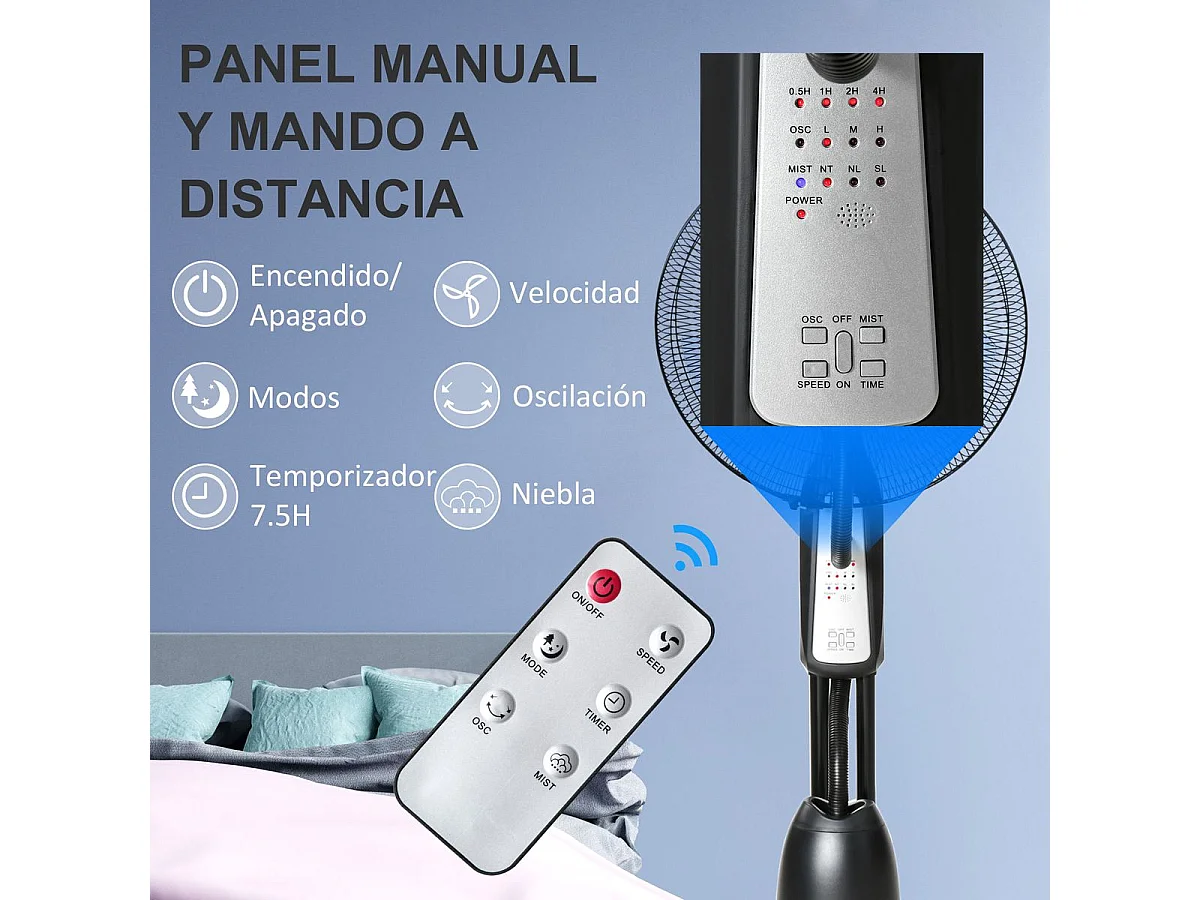 Ventilador nebulizador Wind Homcom 90W 3 modos 5 aspas negro 120 cm