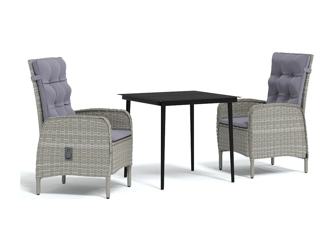 Rhett Logan Set comedor jardín 3 pzas y cojines ratán sintético negro gris