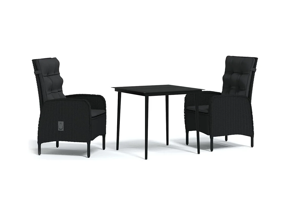 Garden Furniture - Set comedor de jardín 3 pzas con cojines ratán sintético negro