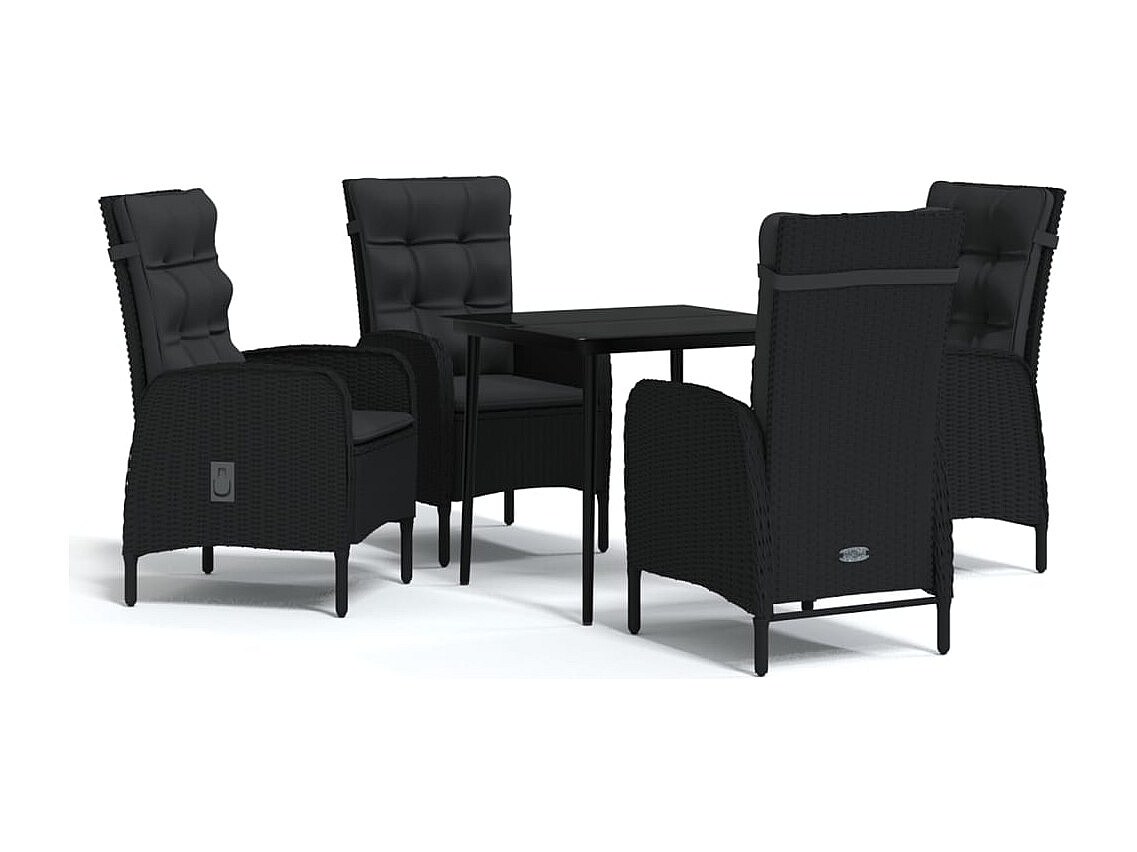 Vernon Juego de comedor de jardín 5 piezas con cojines negro