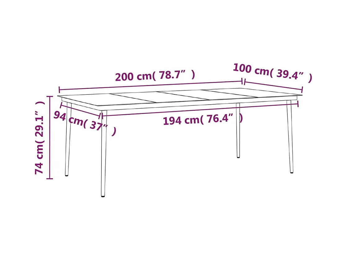 Vernon Juego de comedor de jardín 9 piezas con cojines negro