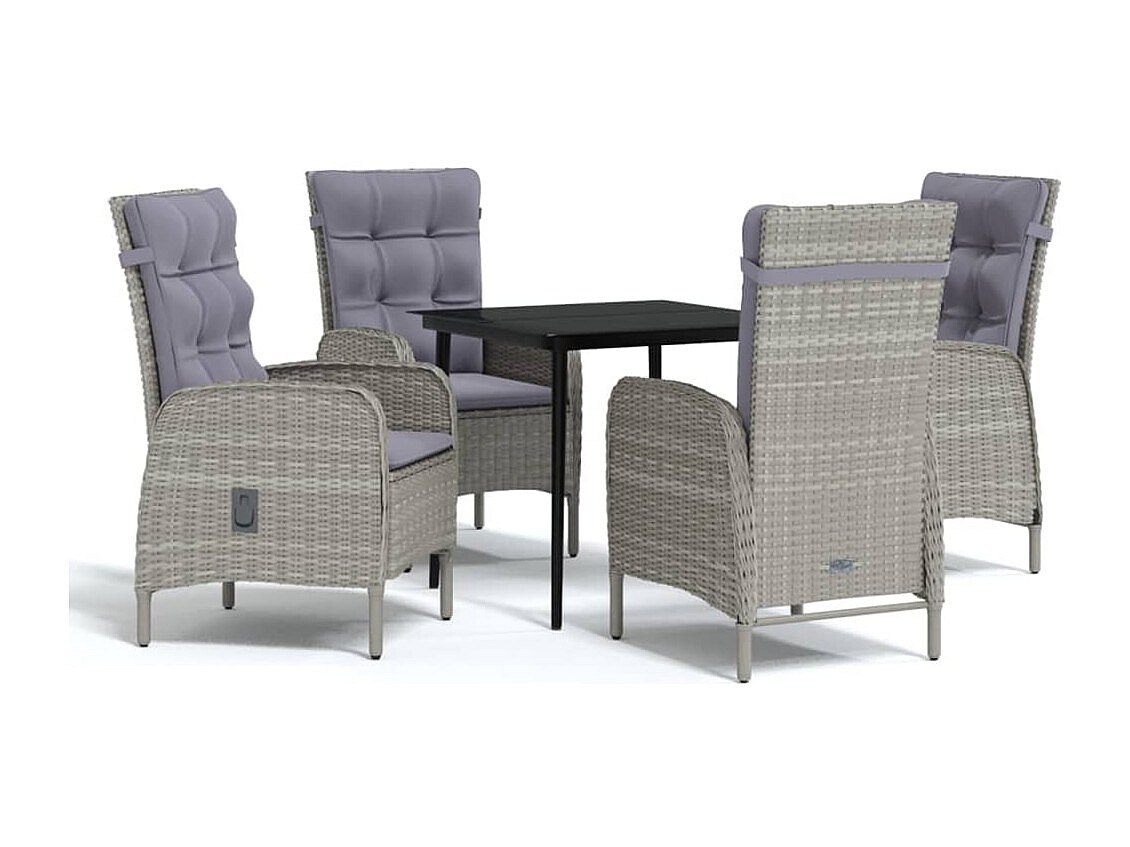 Vernon Juego de comedor para jardín 5 piezas con cojines gris y negro