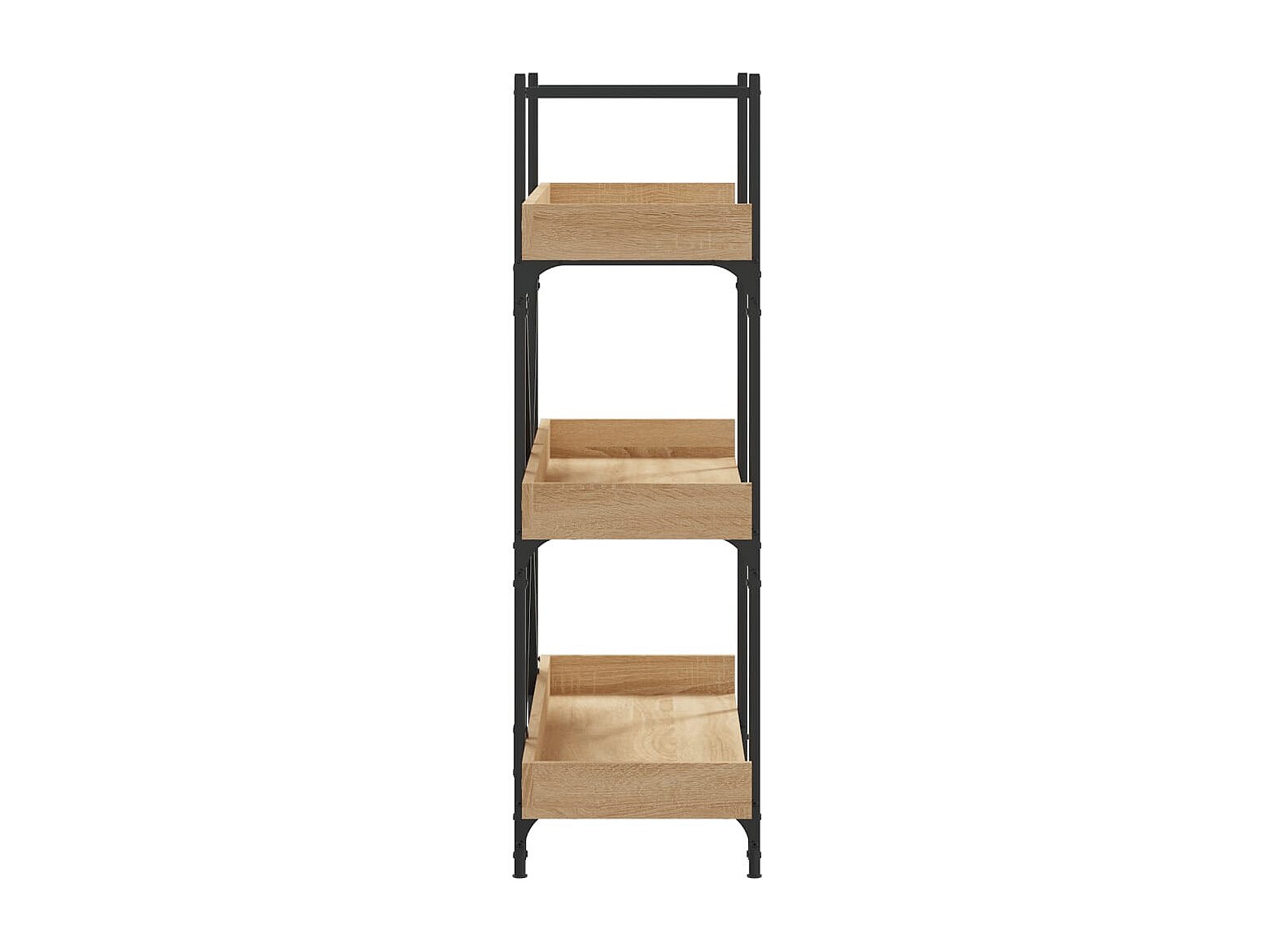 Esta librería ofrece una solución ideal para organizar los libros y será un complemento decorativo y práctico para la decoración de tu hogar. Material duradero: La madera contrachapada tiene una calidad excepcional, con una superficie lisa y también cuenta con fuerza, estabilidad y resistencia a la humedad. Fabricada en madera de ingeniería, la estantería es fácil de limpiar.Amplio espacio de almacenaje: La estantería ofrece un amplio espacio de almacenaje para mantener bien organizados y al alcance revistas, libros, artículos decorativos y otros objetos de uso diario.Patas ajustables: Las patas regulables con tacos de plástico mantienen equilibrada la estantería sobre suelos irregulares y aumentan su estabilidad.Diseño bien pensado: Los bordes elevados (tanto laterales como traseros) de los estantes evitan que tus pertenencias se caigan y protegen las paredes de la suciedad y los arañazos.Estructura estable: La barra en X y la estructura metálica añade un estilo industrial a la casa, además de garantizar su durabilidad y estabilidad. Advertencia:Para evitar que vuelque, este producto debe usarse con el dispositivo de fijación a la pared incluido.