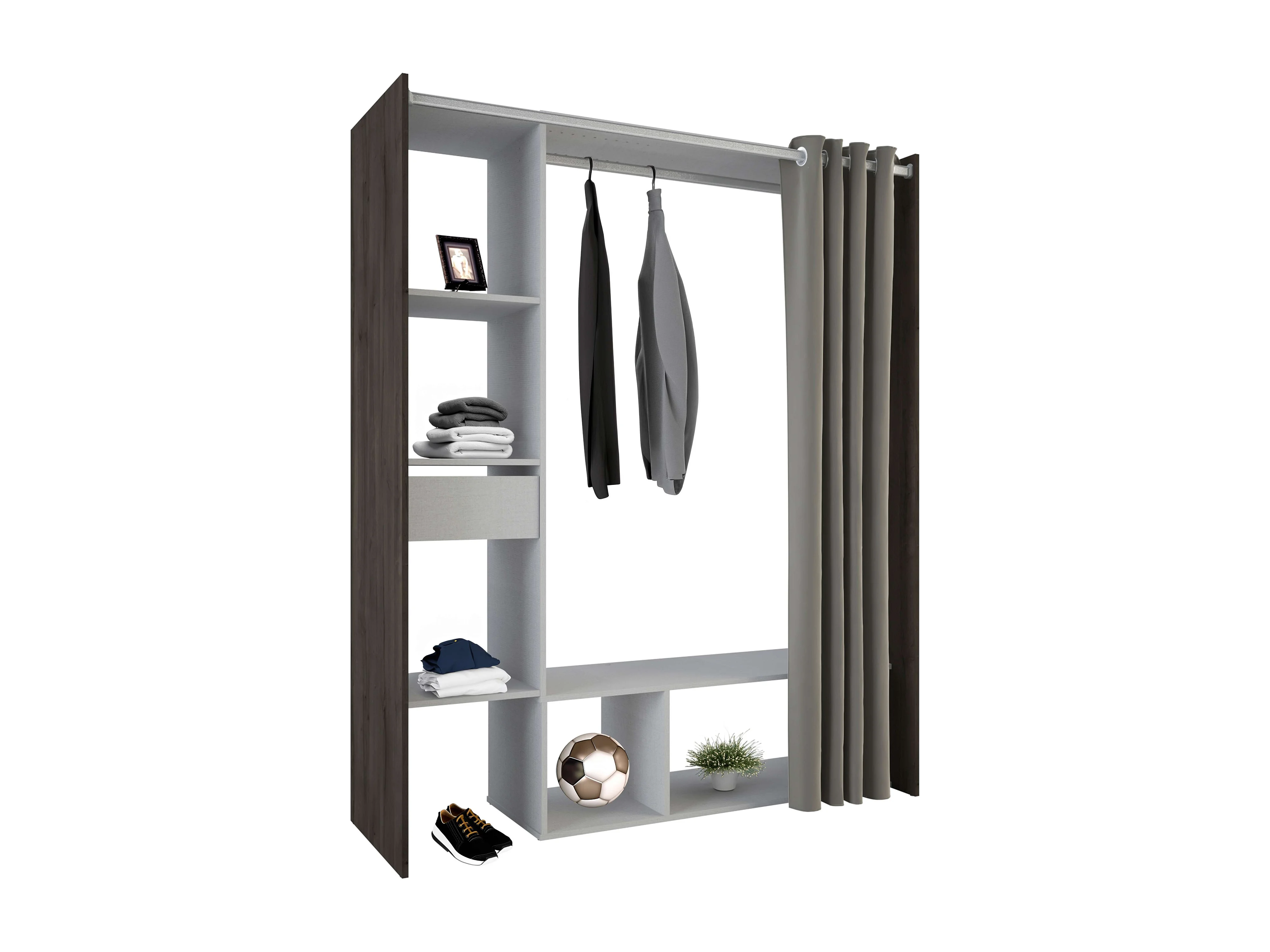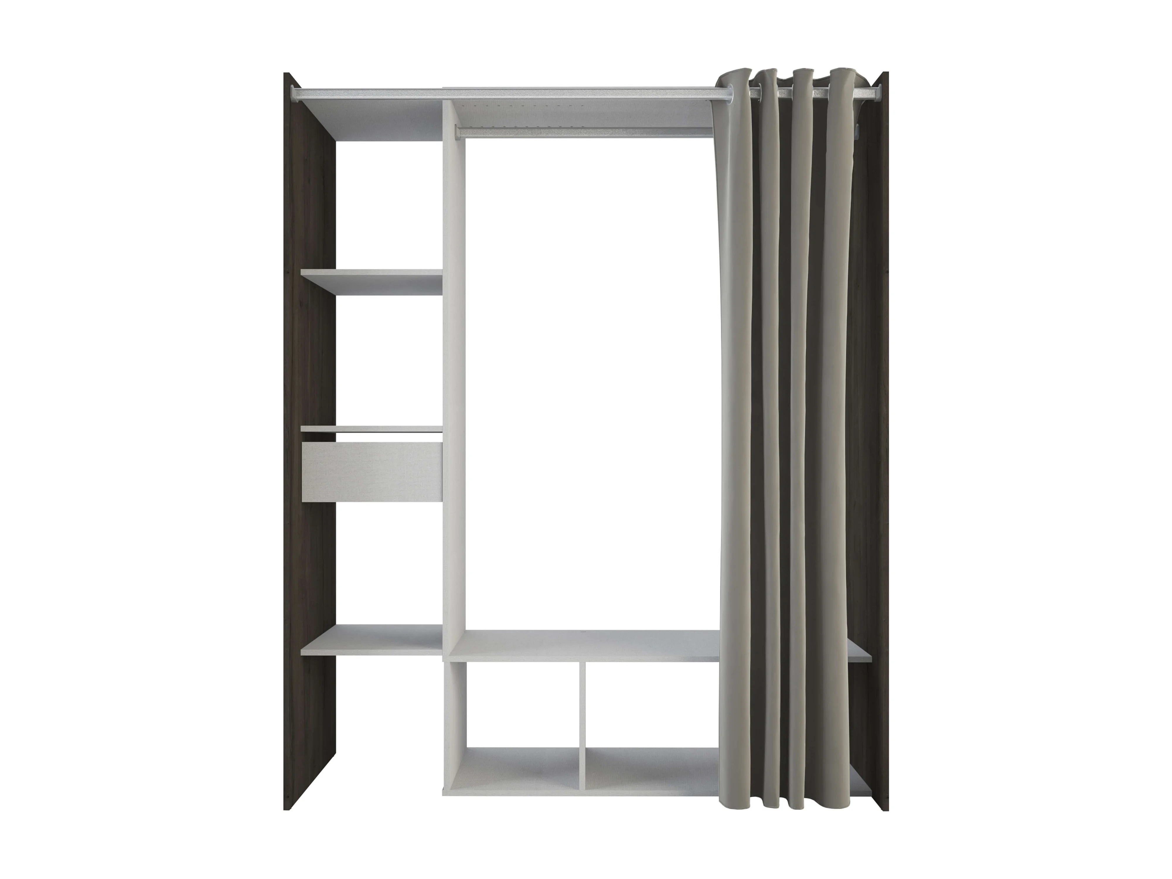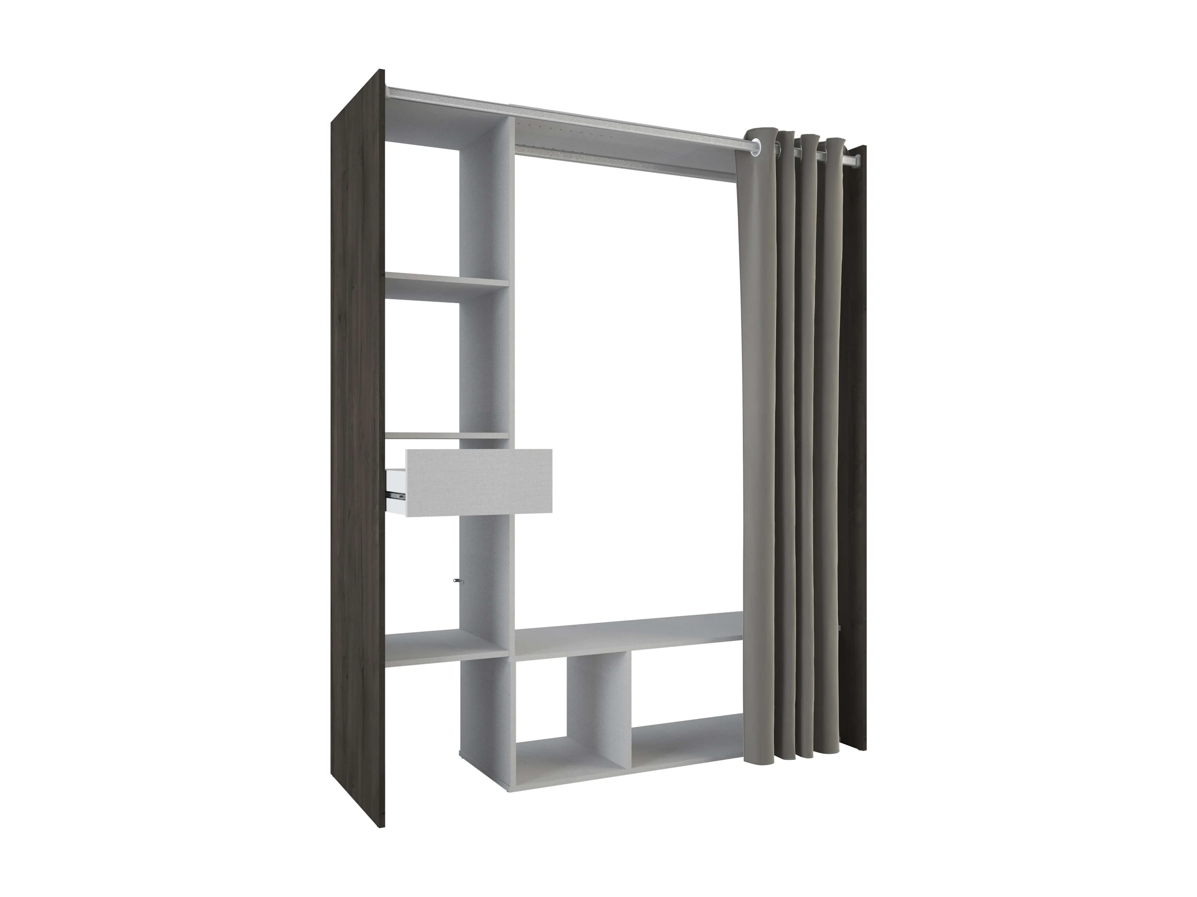 Vestidor Siles para dormitorio con cortina, 3 baldas y 1 cajon natural-grafito 205 cm(alto