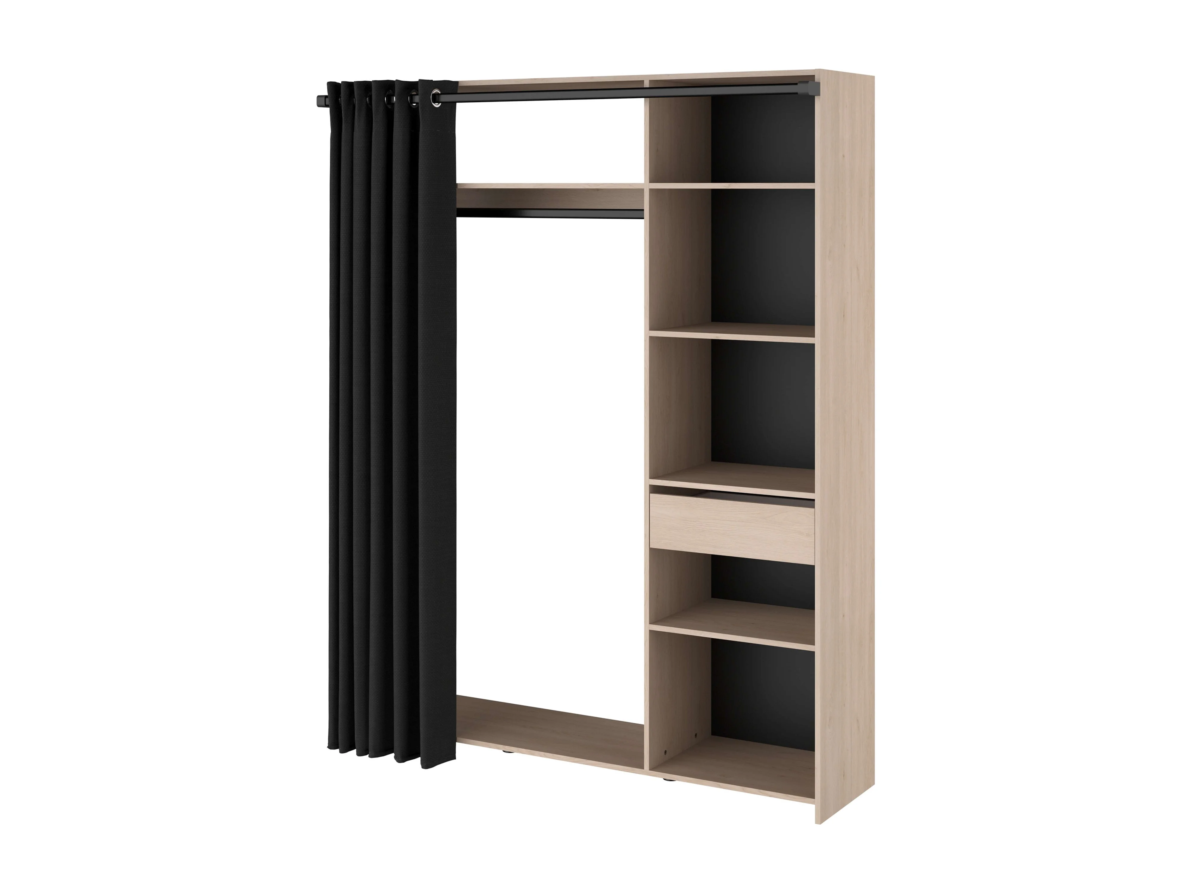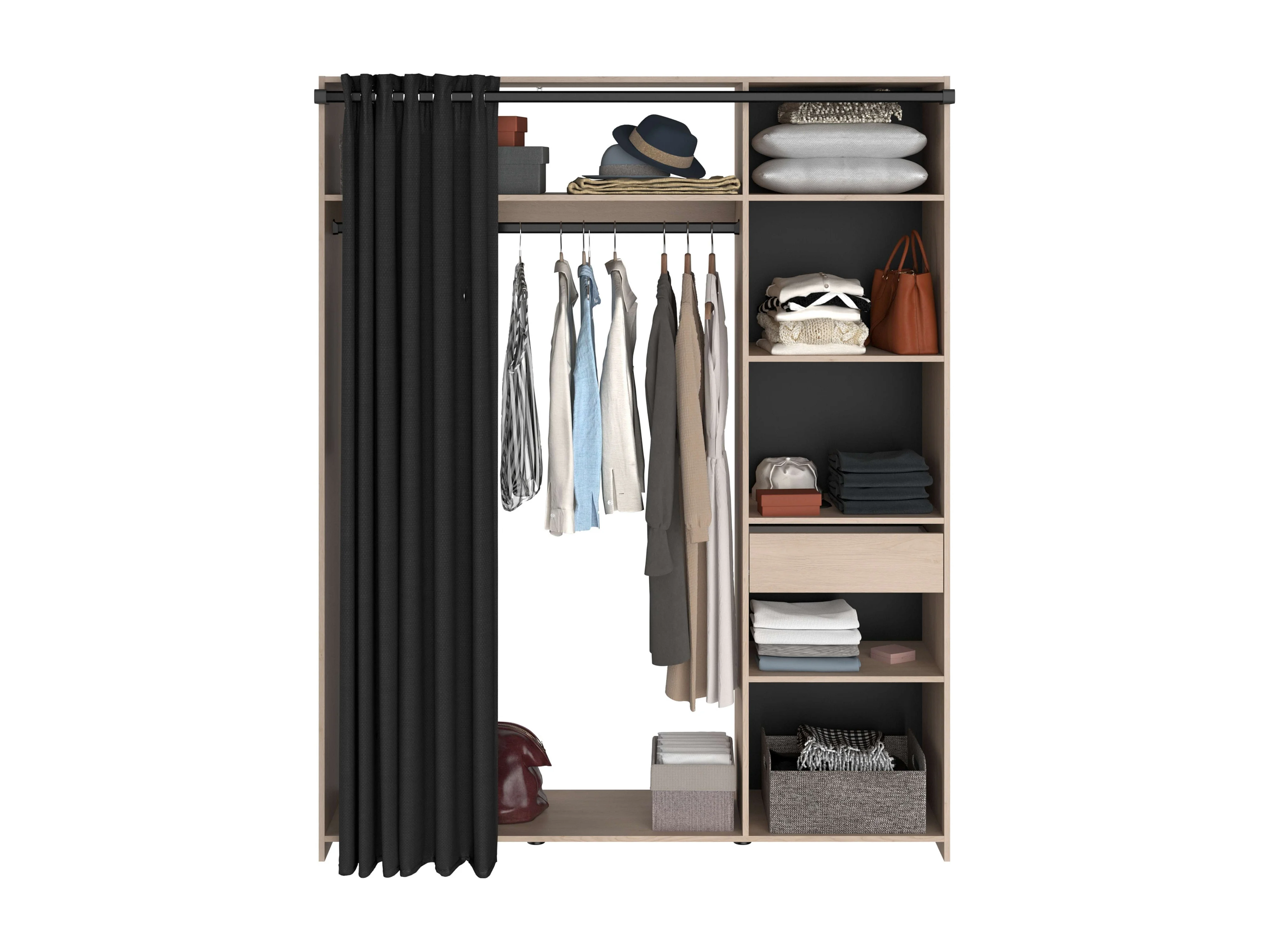 Vestidor Dark melamina 6 nichos barra colgar cortina 200x161x40 cm