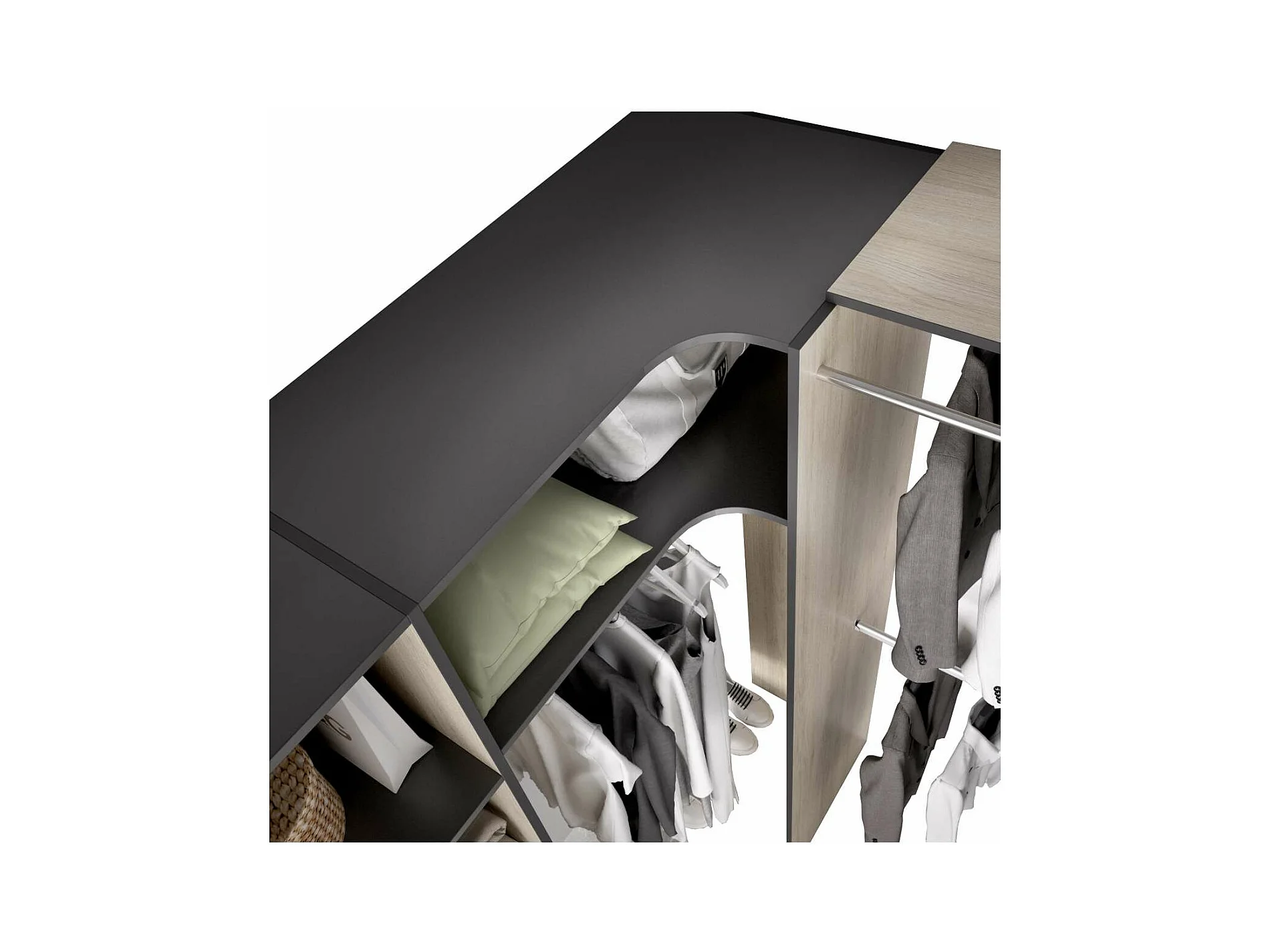 Vestidor de rincón Siles con cortina y cajones acabado natural/grafito, 205cm(alto) 214cm