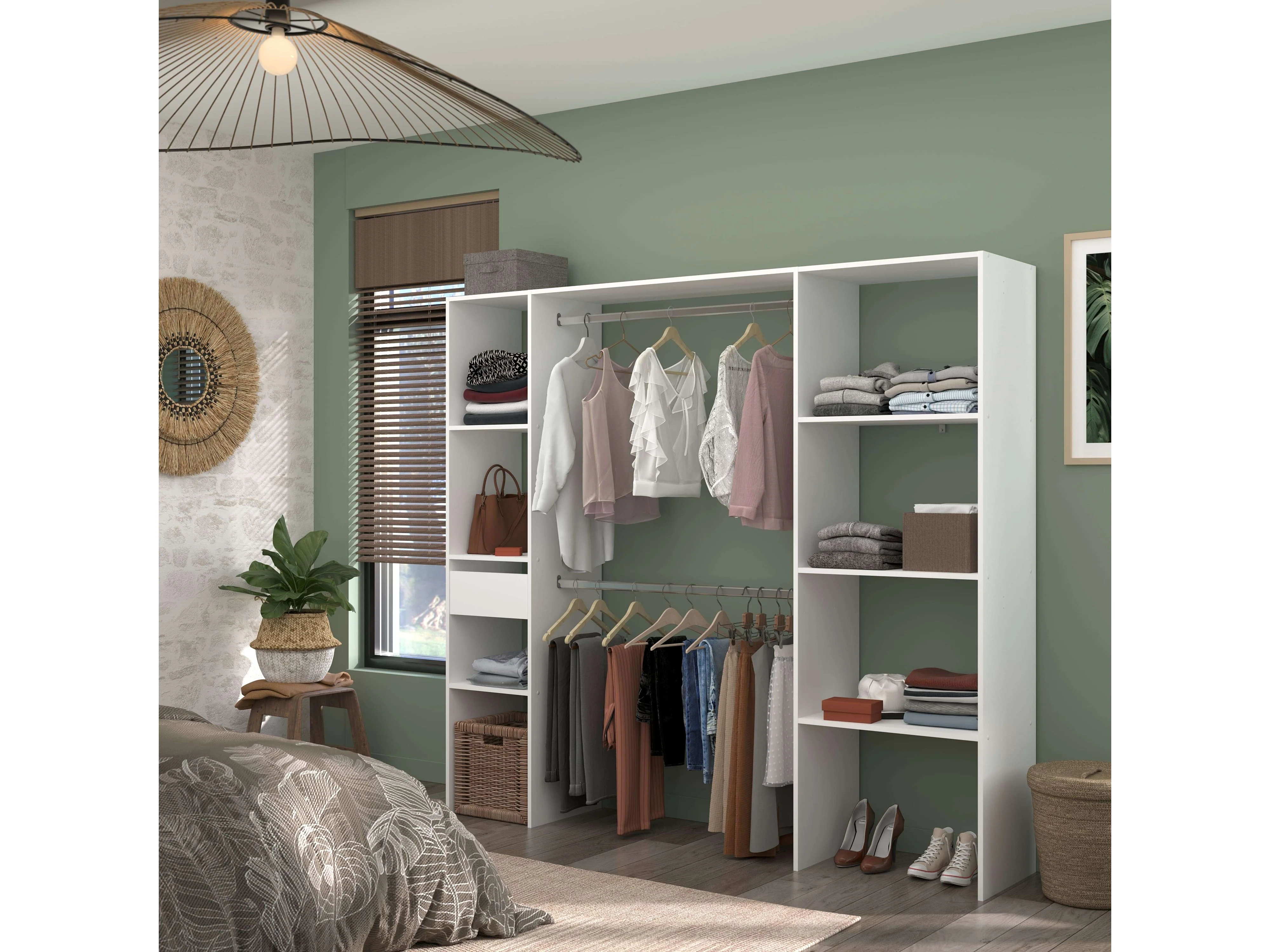 Vestidor Californie 1 Cajón Armario Abierto Roble Kronberg Blanco 118x183 cm