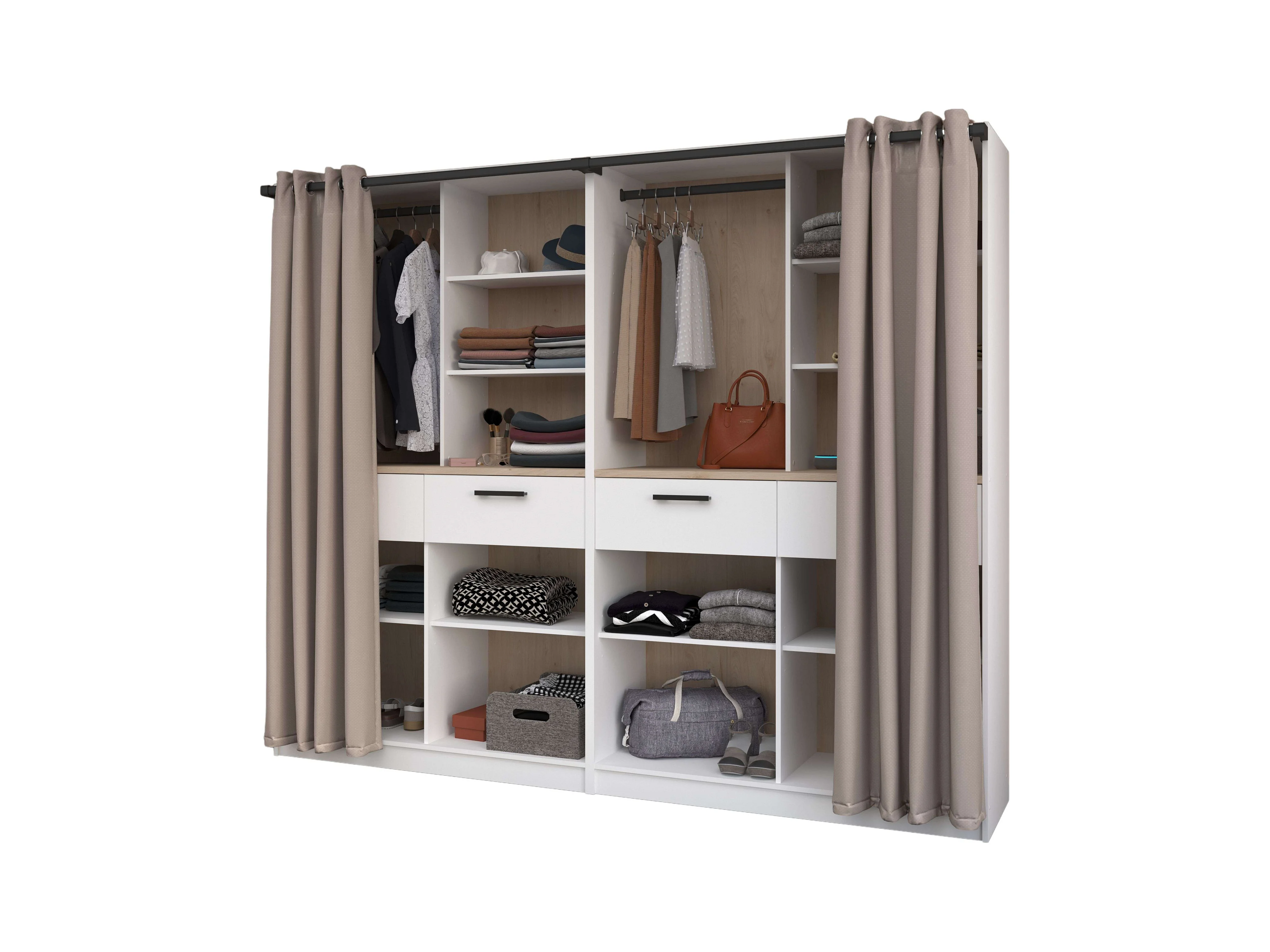 Vestidor modular Flexa 4 estantes 2 cajones madera claro blanco 240x200x50 cm