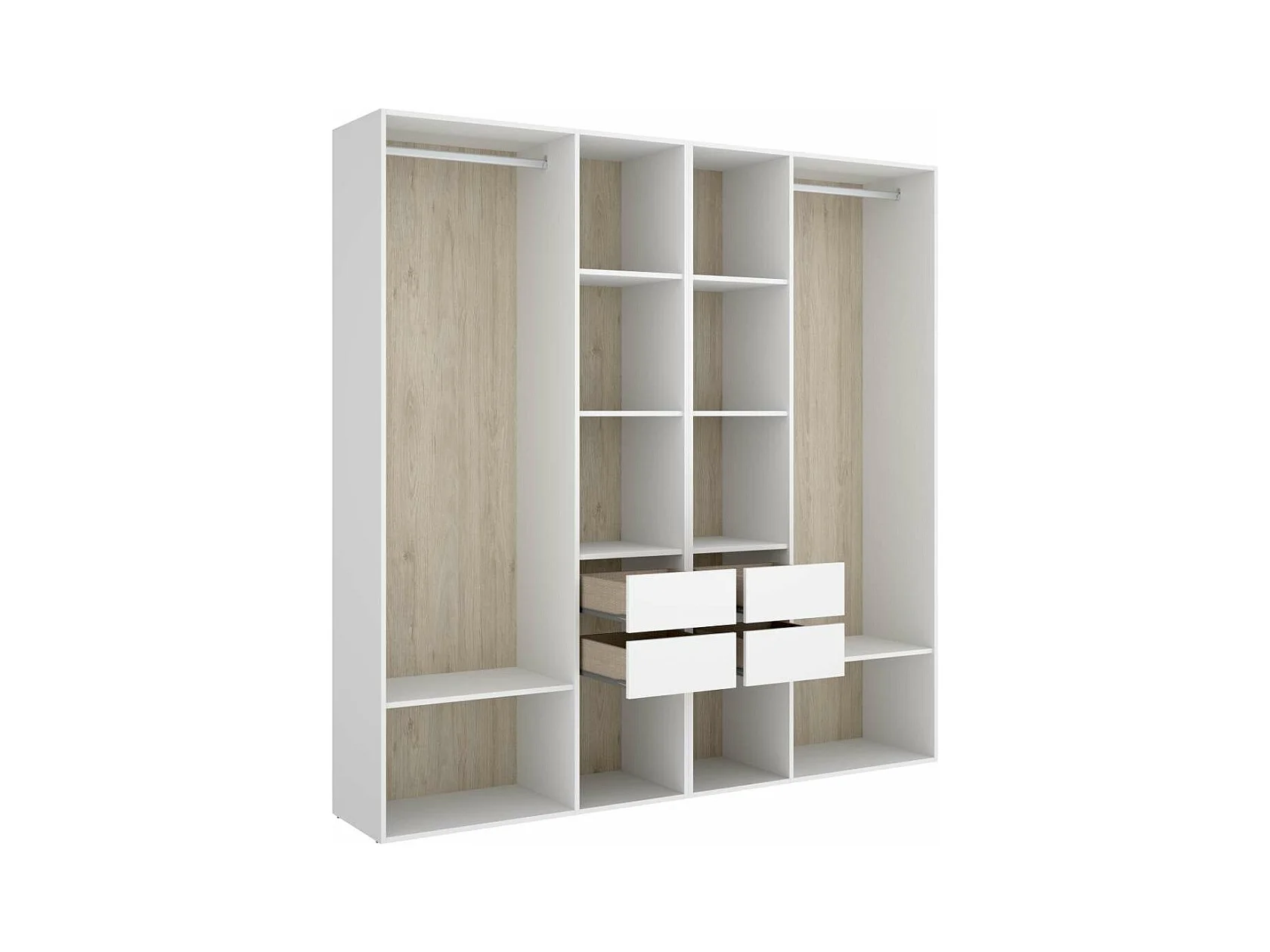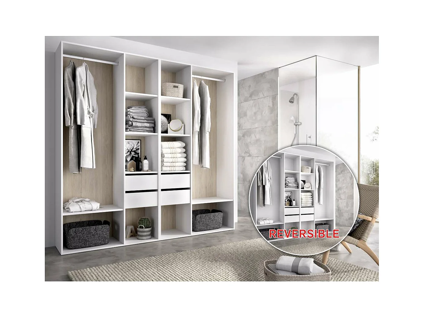 Vestidor Reus 4 cajones, 10 huecos y trasera reversible en blanco/natural, 205cm(alto) 196