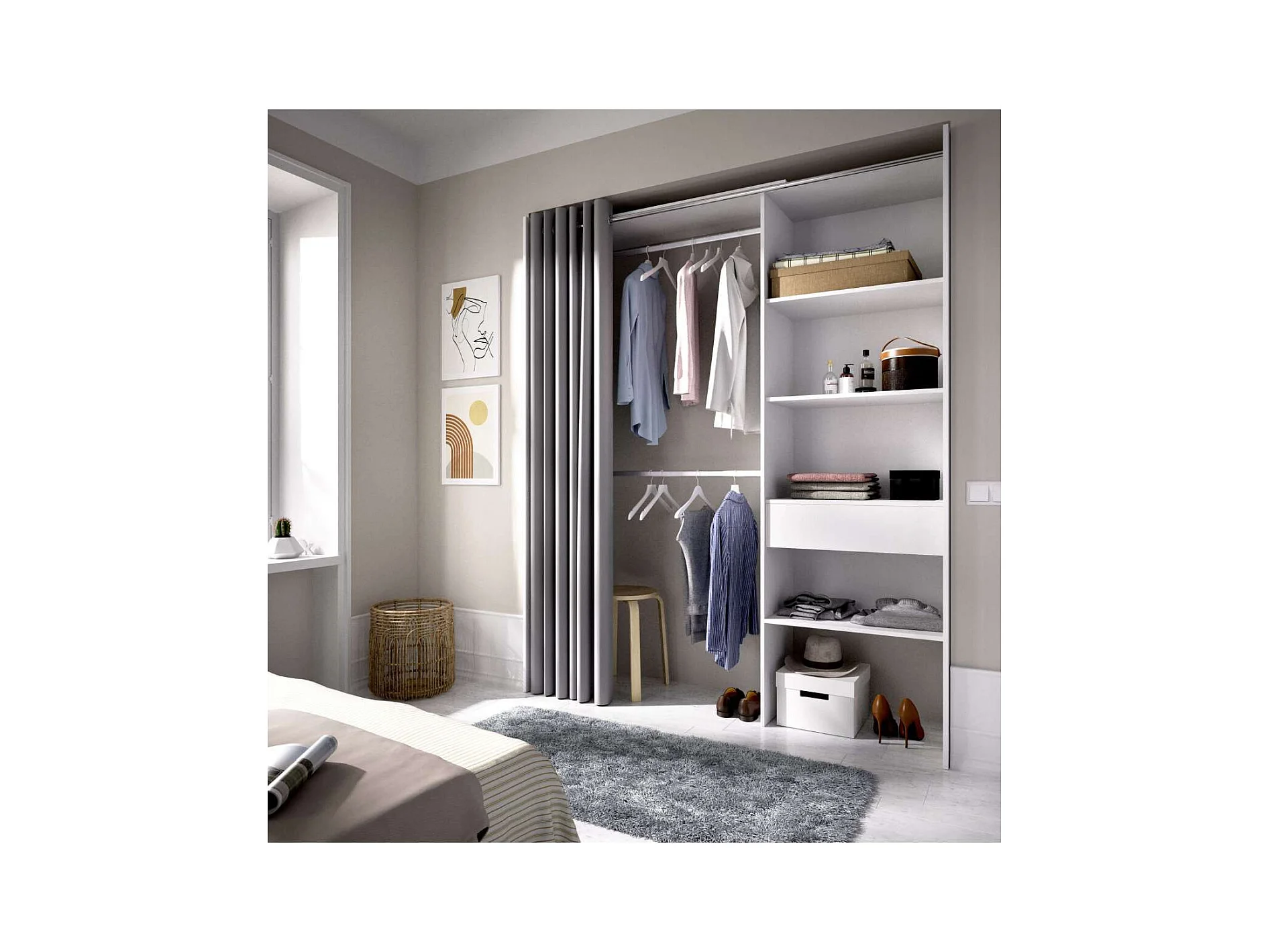 Vestidor Siles para dormitorio con cortina, 3 baldas y 1 cajon en color blanco 205 cm(alto