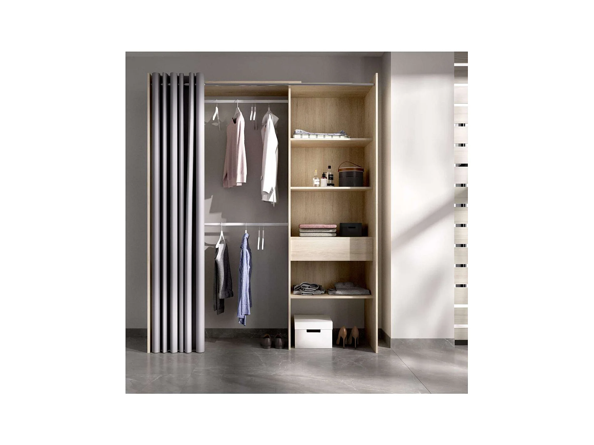 Vestidor Siles para dormitorio con cortina, 3 baldas y 1 cajon en roble natural 205 cm(alt