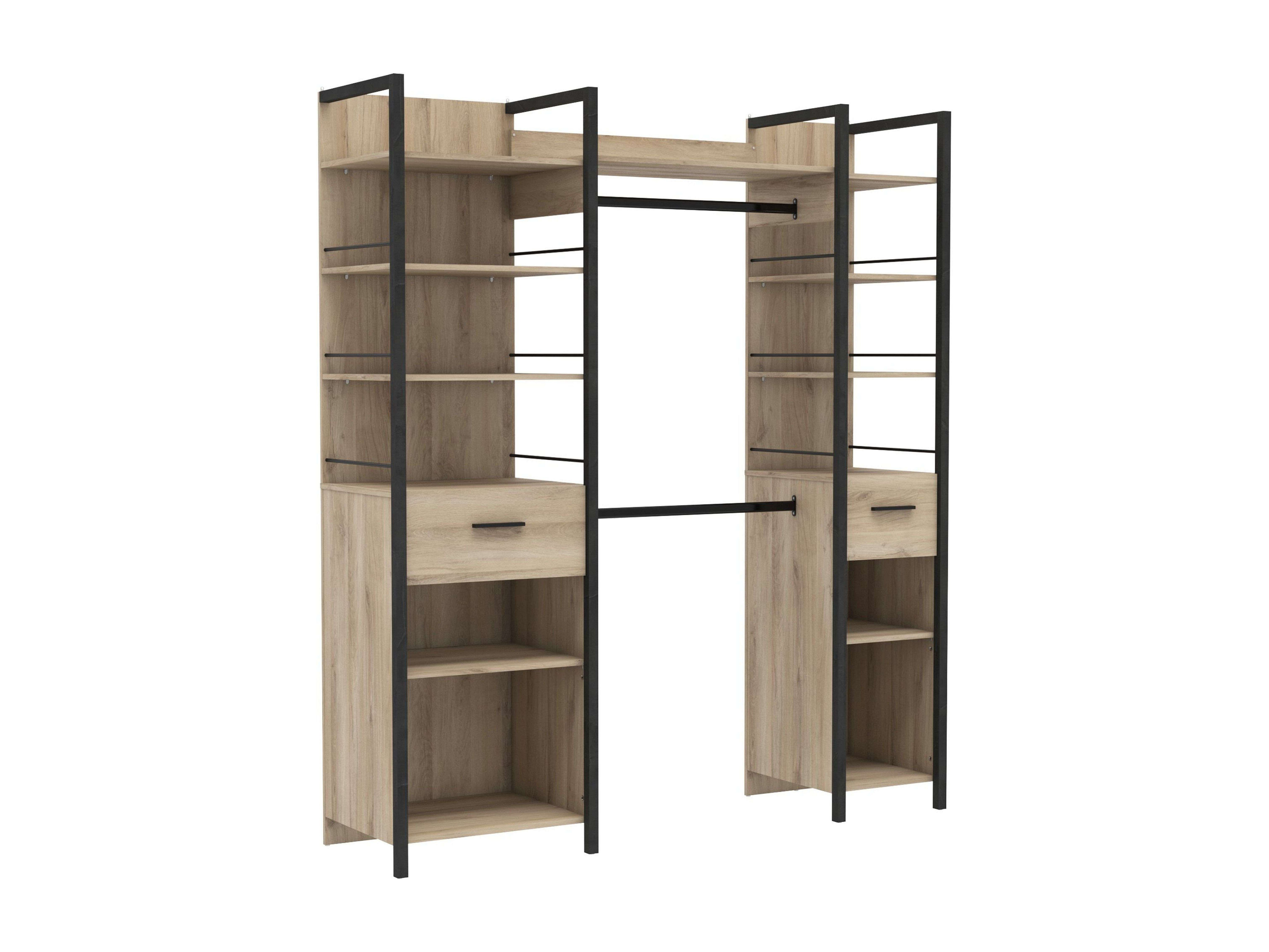Vestidor Aura col. 5 estantes, 1 cajón, barra madera clara/negra 161x200x50 cm