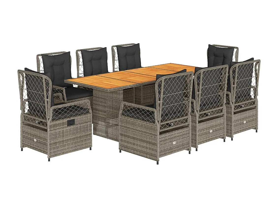 Veteli Set comedor jardín 9 pzas y cojines ratán sintético gris