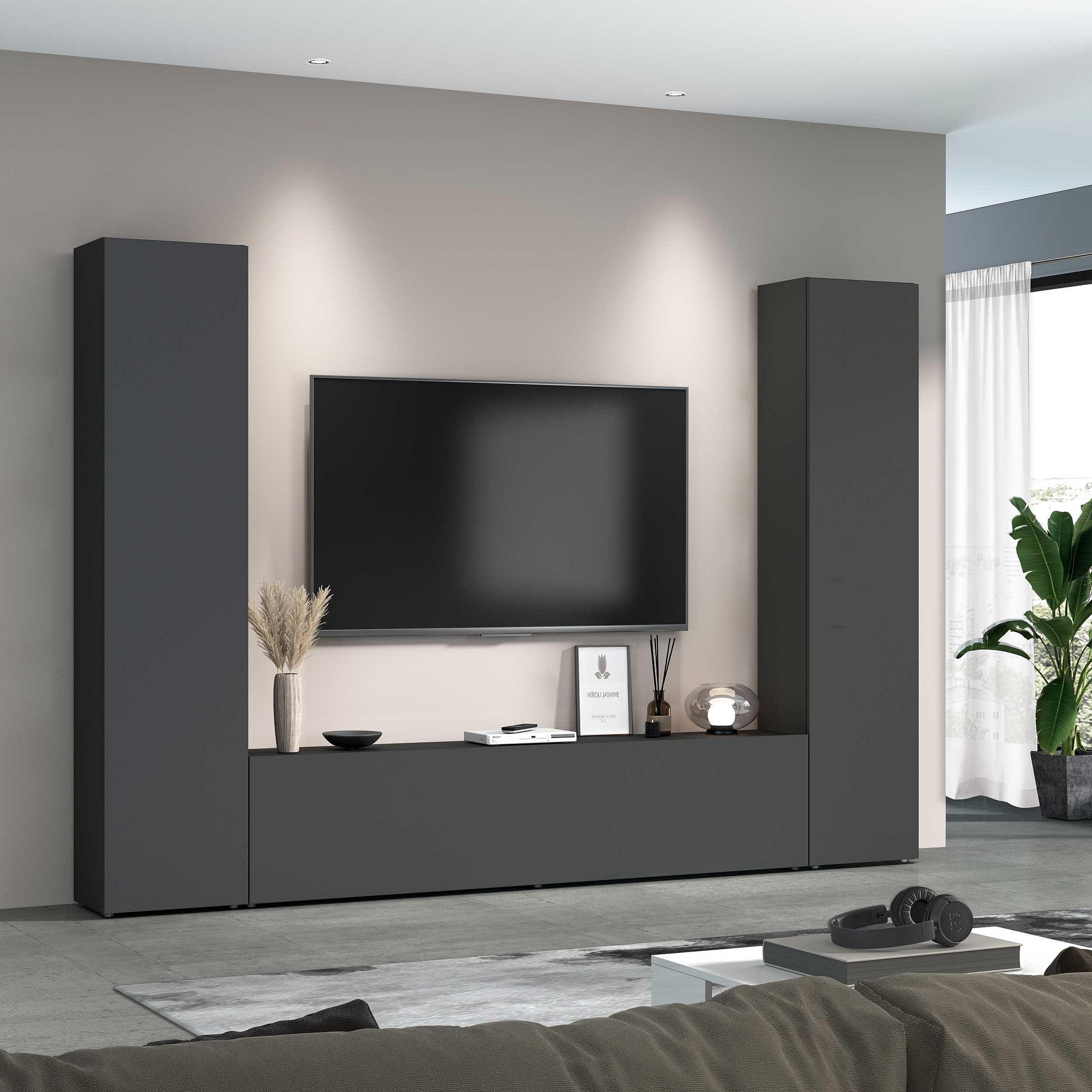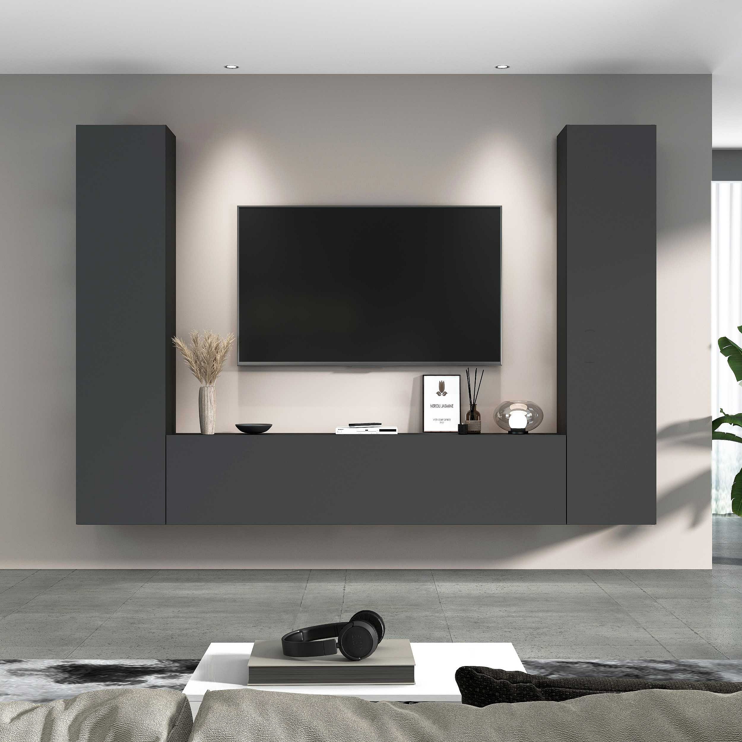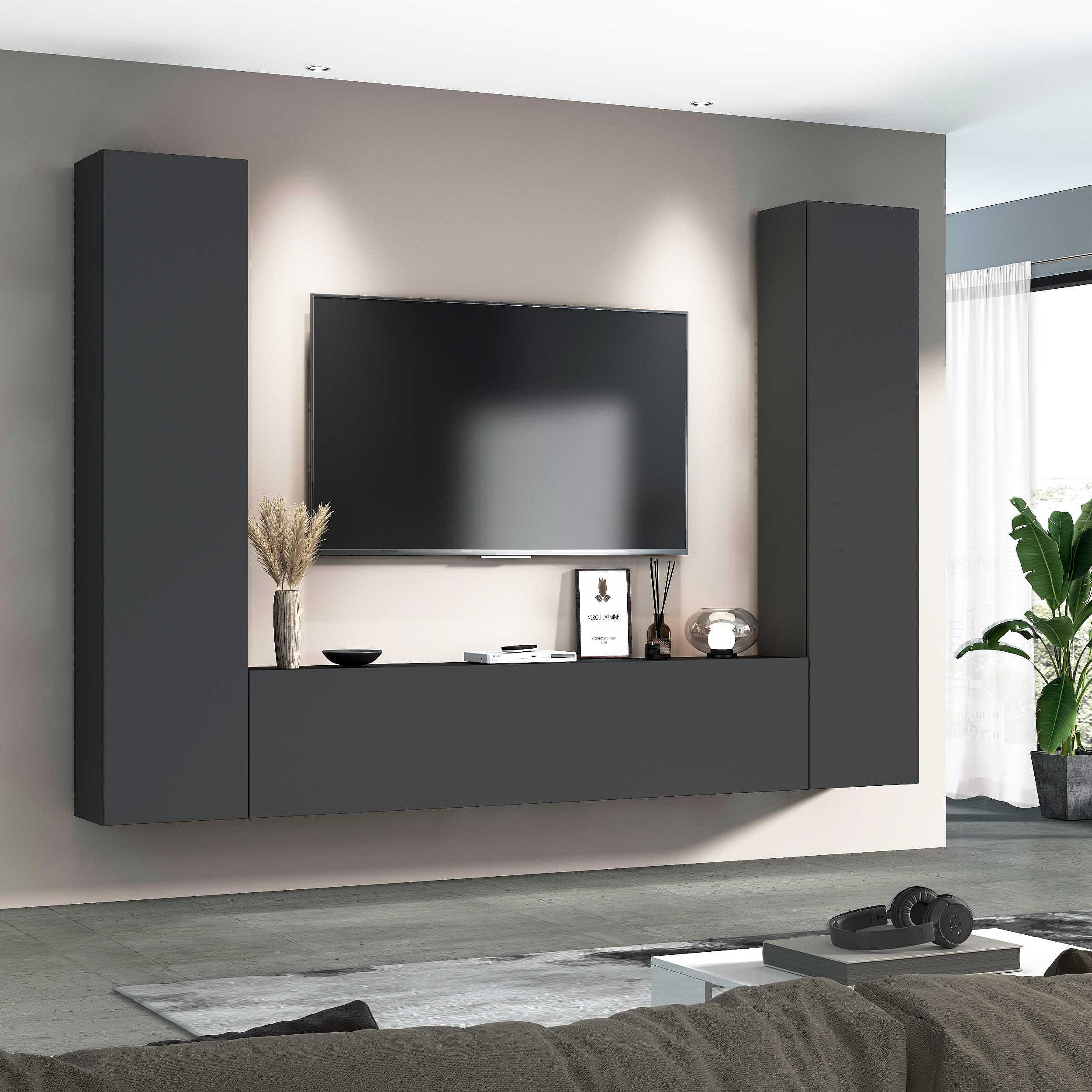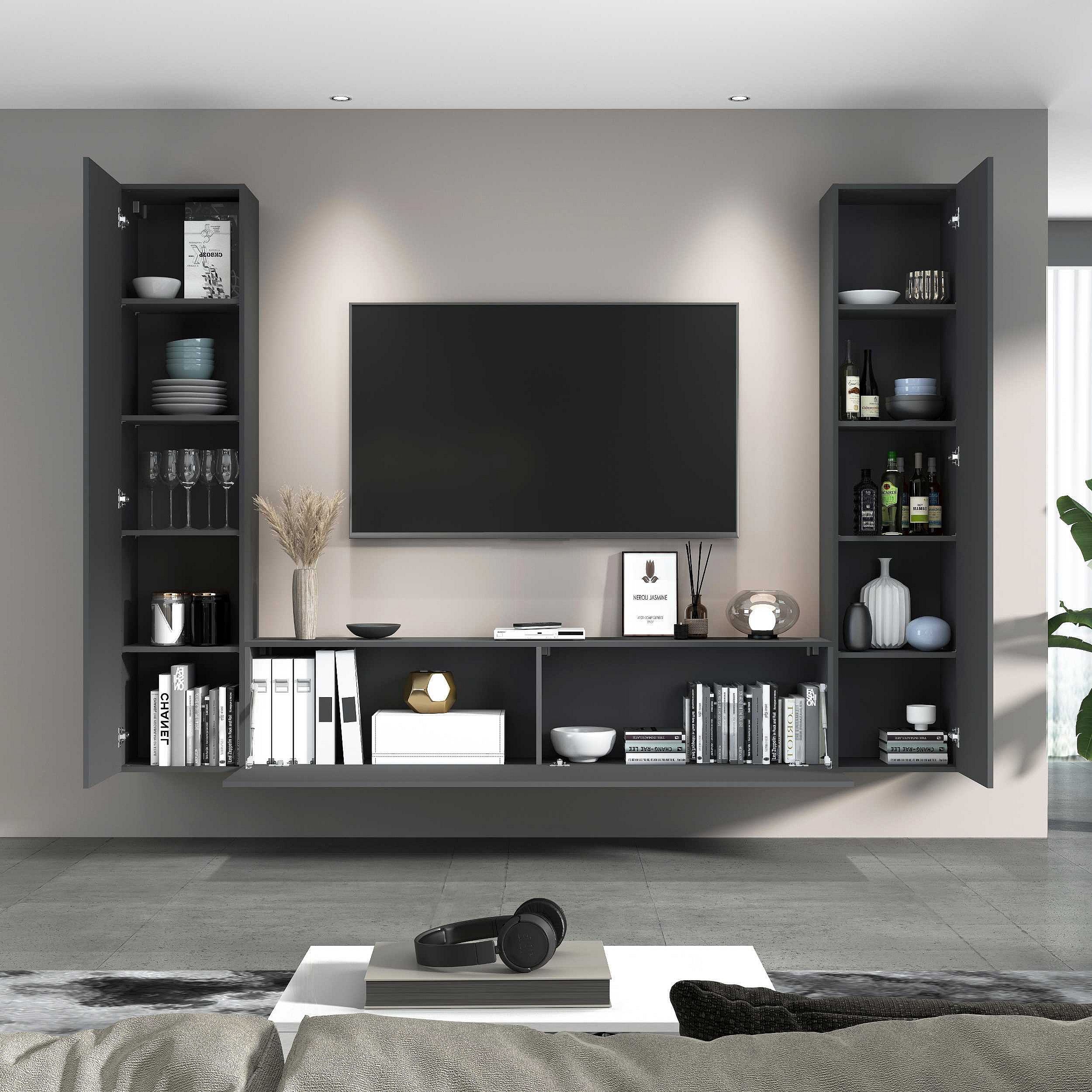 Vibe RT mueble TV moderno gris colgado sistema pared 2 armarios