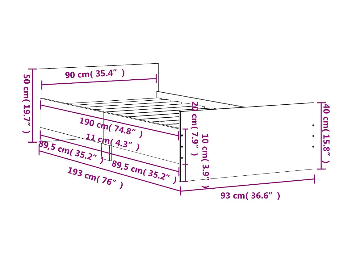 vidaXL Estructura de cama madera contrachapada roble Sonoma 90x190 cm Marrón