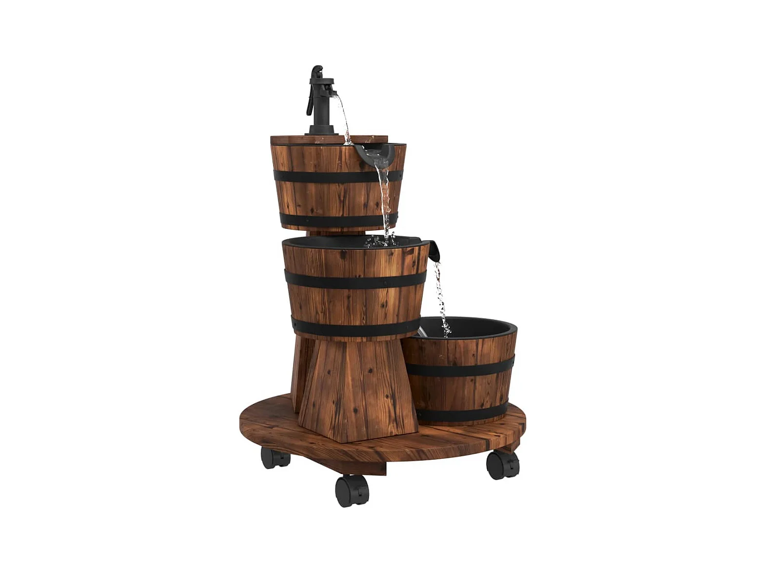 vidaXL Fuente de agua con bomba y ruedas madera de abeto 55x55x80 cm Marrón