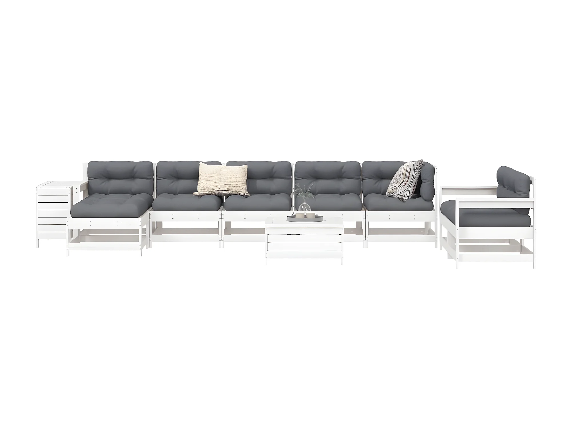 vidaXL Juego de sofás de jardín 10 pzas madera maciza de pino blanco
