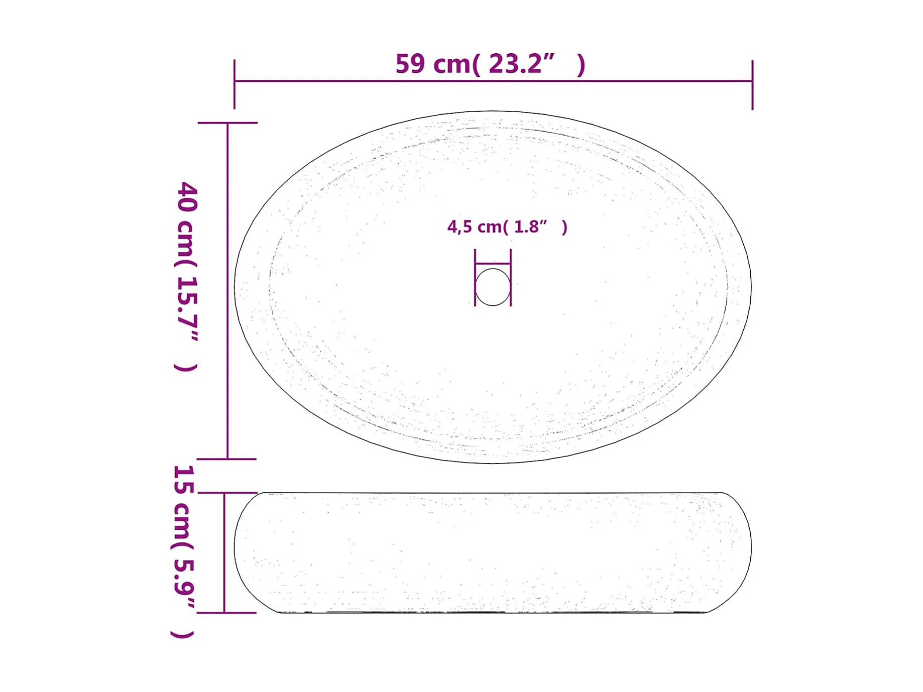 Lavabo de encimera Livha ovalado cerámica negro 15x59x40 cm
