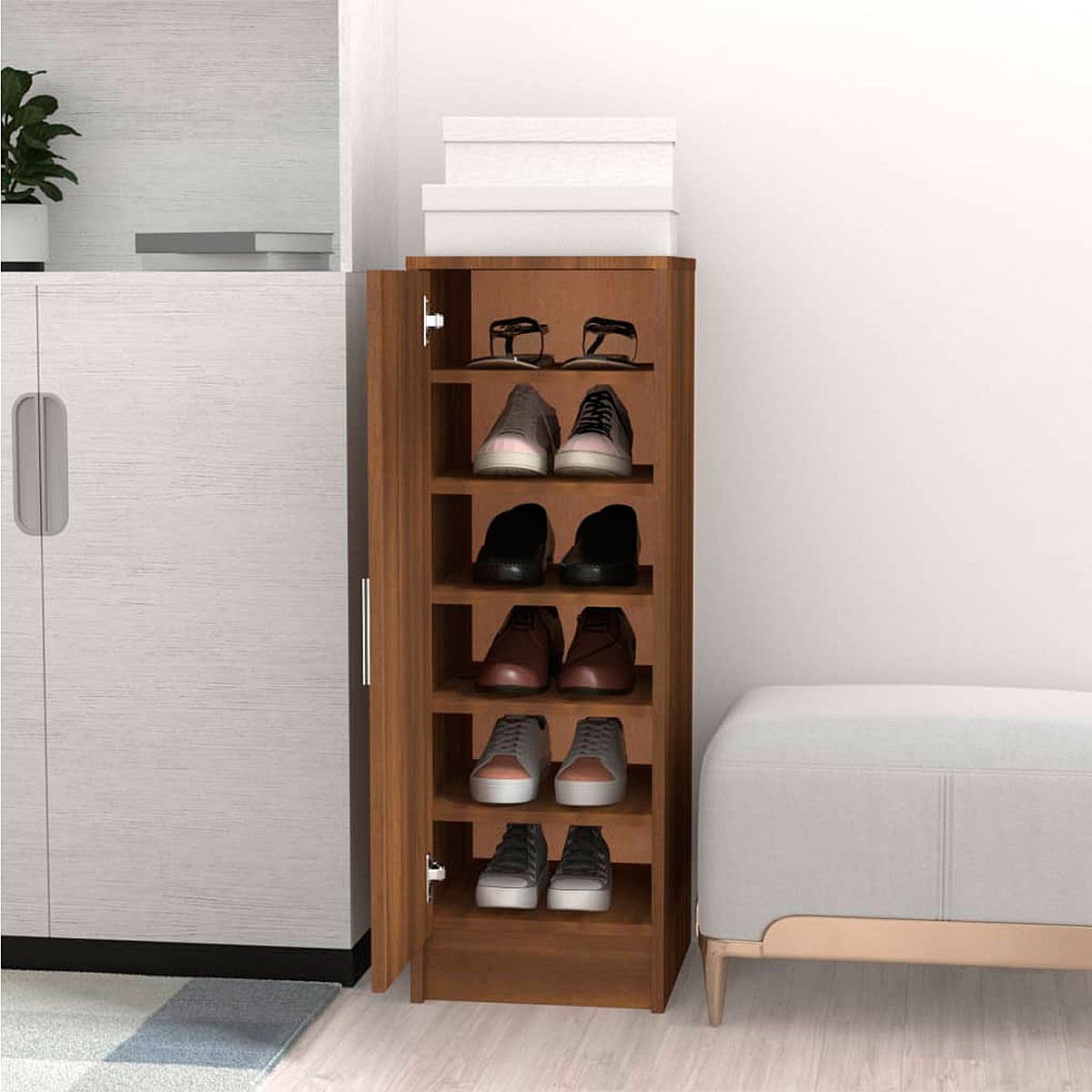 Mueble zapatero 1 puerta 6 compartimentos roble oscuro 92x32x35 cm