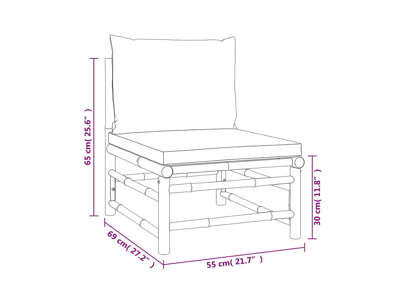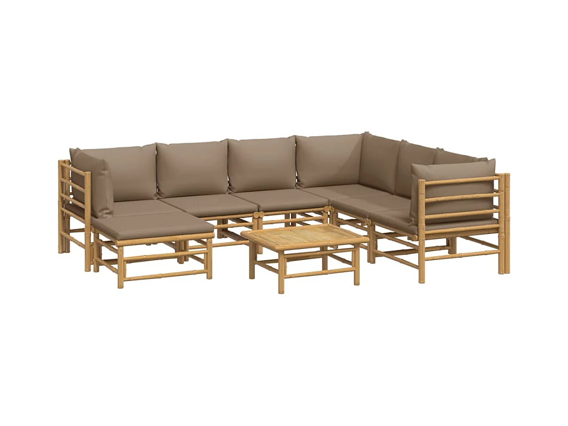 vidaXL Set de muebles de jardín 8 piezas bambú y cojines gris taupé Marrón