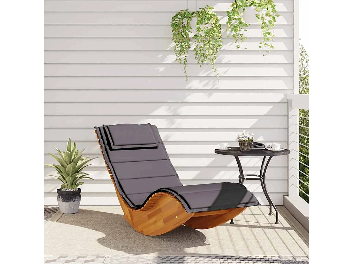 Tumbona mecedora Mazaneda madera de acacia gris oscuro 74x154x60 cm