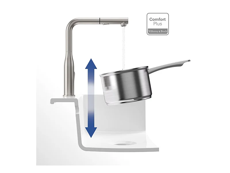 VILLEROY ET BOCH Grifo de cocina para ducha de acero macizo