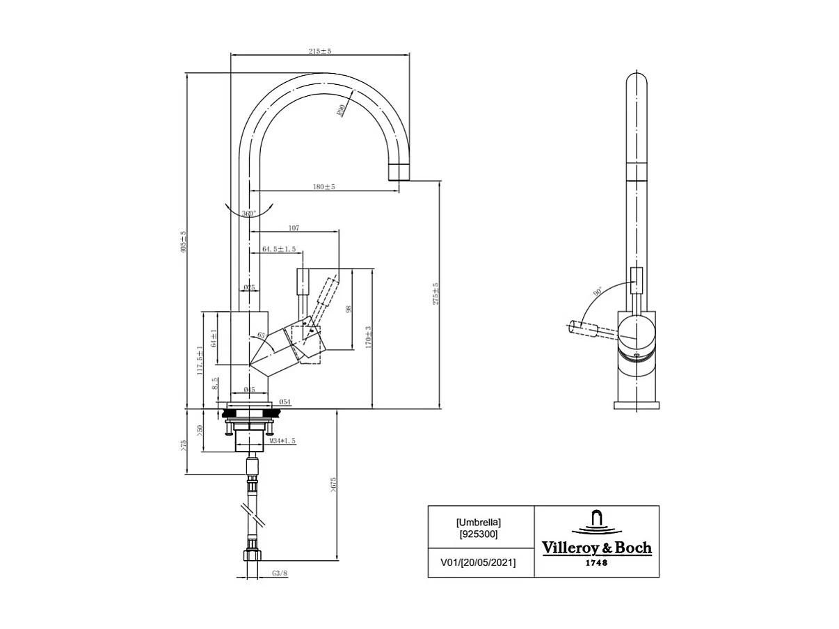 VILLEROY ET BOCH Grifo de cocina Umbrella antracita