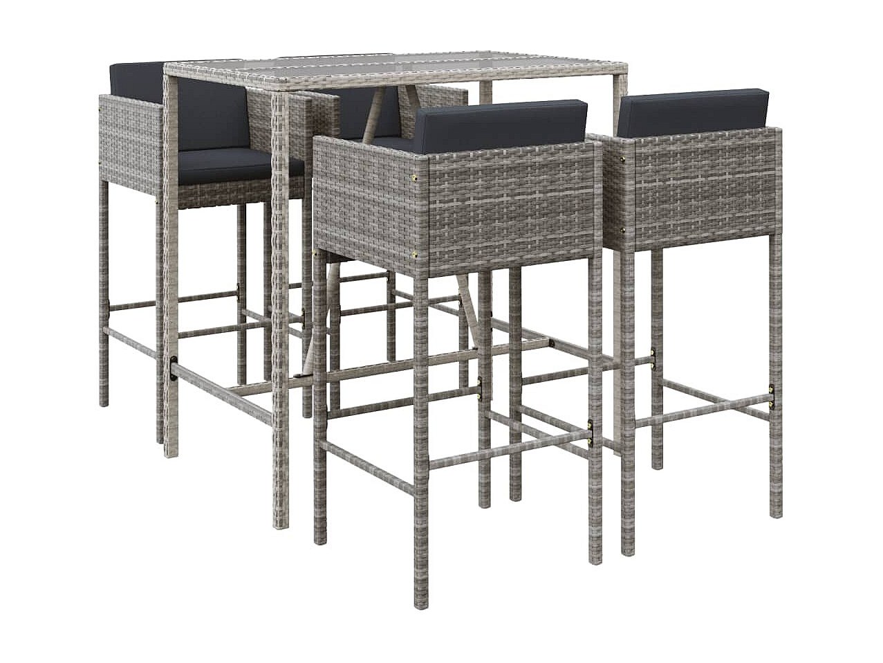 Helyra Mesa y taburetes altos jardín 5 piezas ratán sintético gris