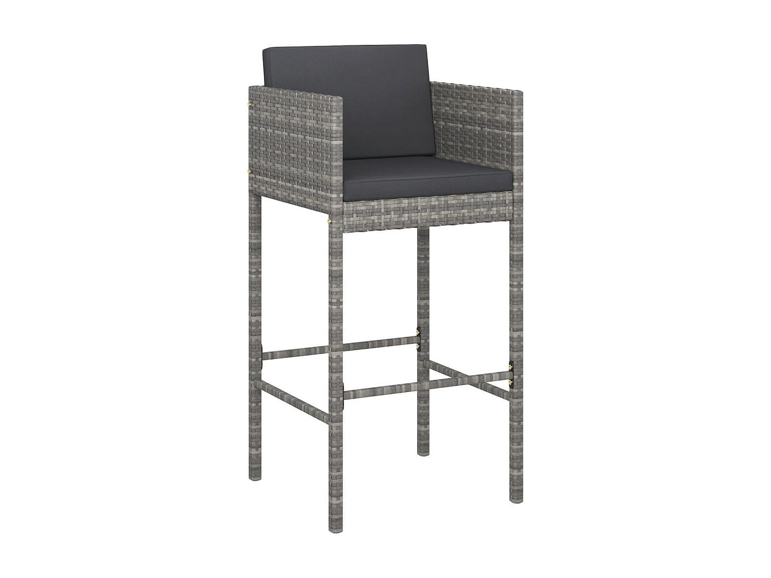 Vjorn Mesa y taburetes altos jardín 5 piezas y cojines ratán PE gris