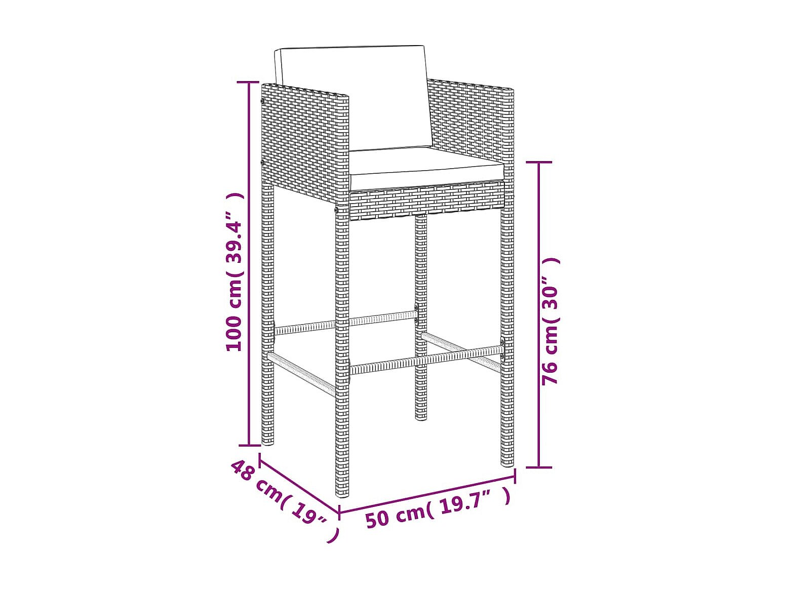 Virrat Mesa y taburetes altos jardín y cojines 7 pzas ratán PE gris