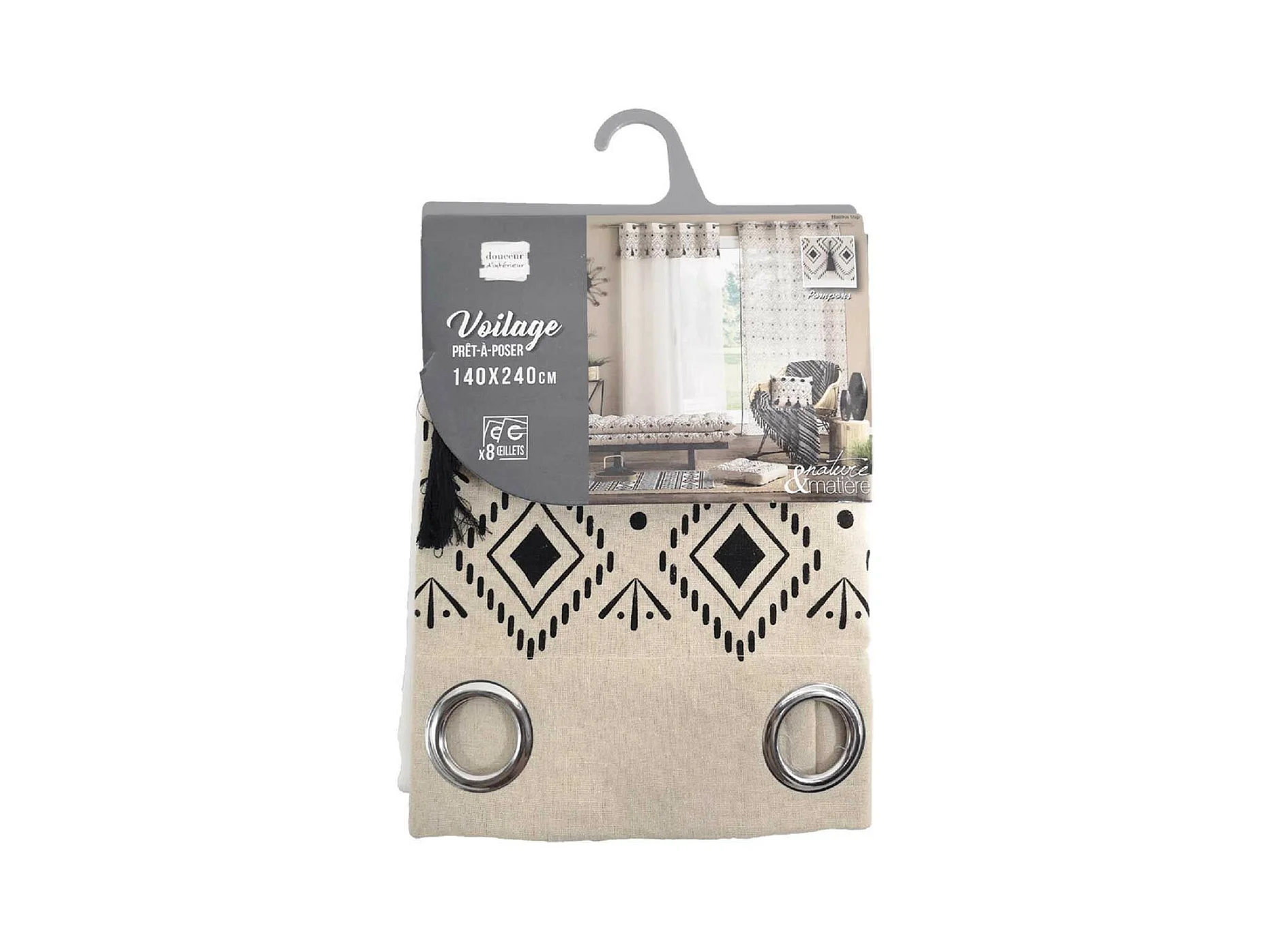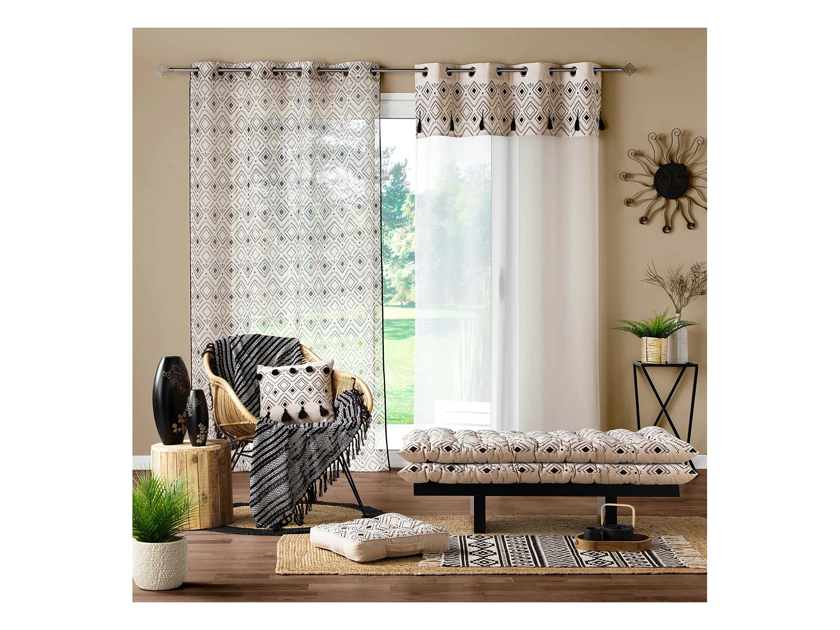 Cortina bi material con lona de yute estampada 140 x 240 cm