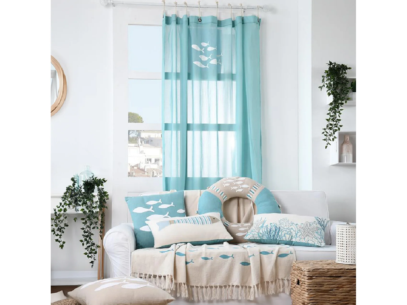 Visillo Estilo Marino con Motivos de Peces