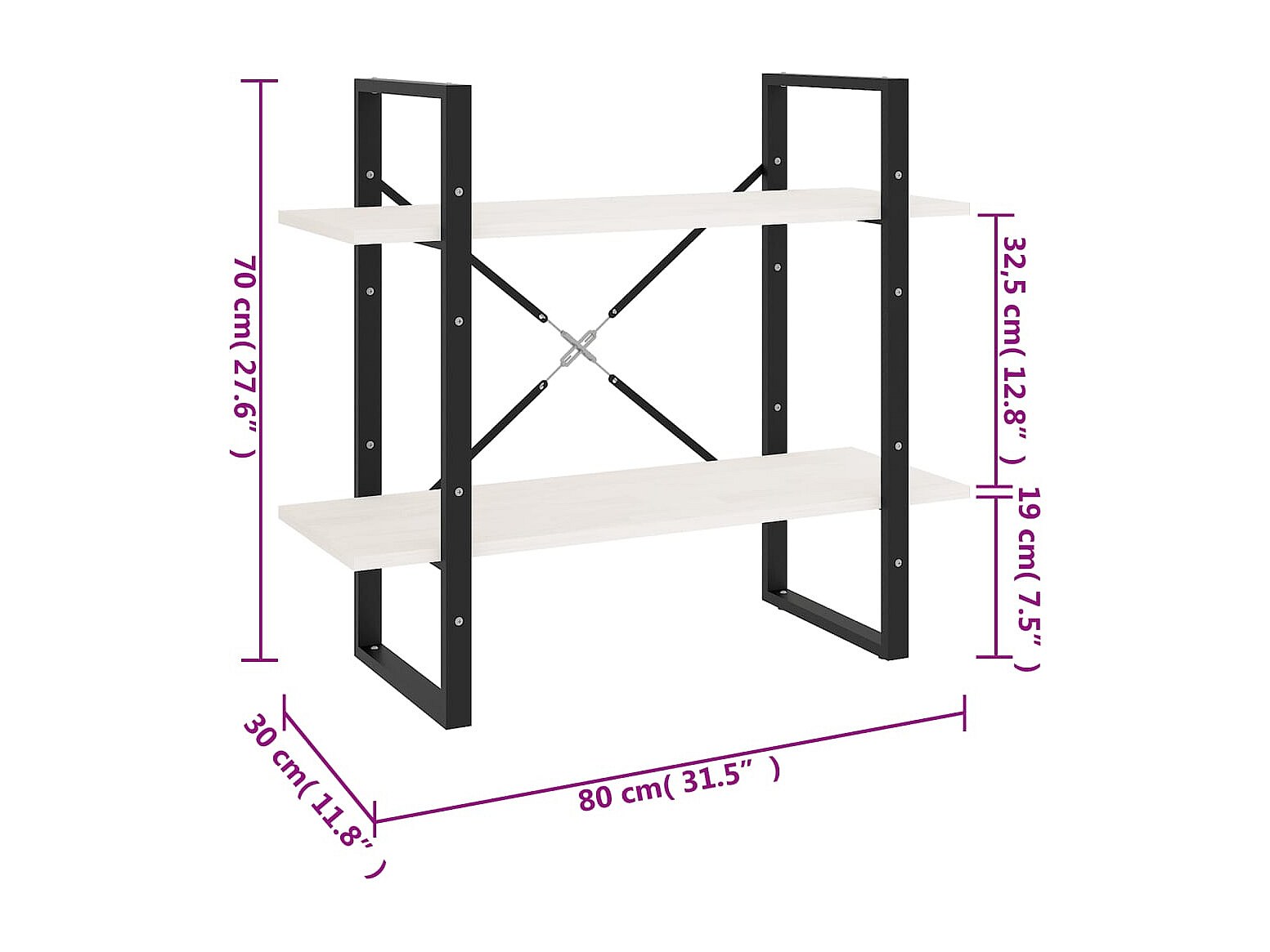 Vista Estantería 2 niveles madera maciza de pino blanco 80x30x70 cm
