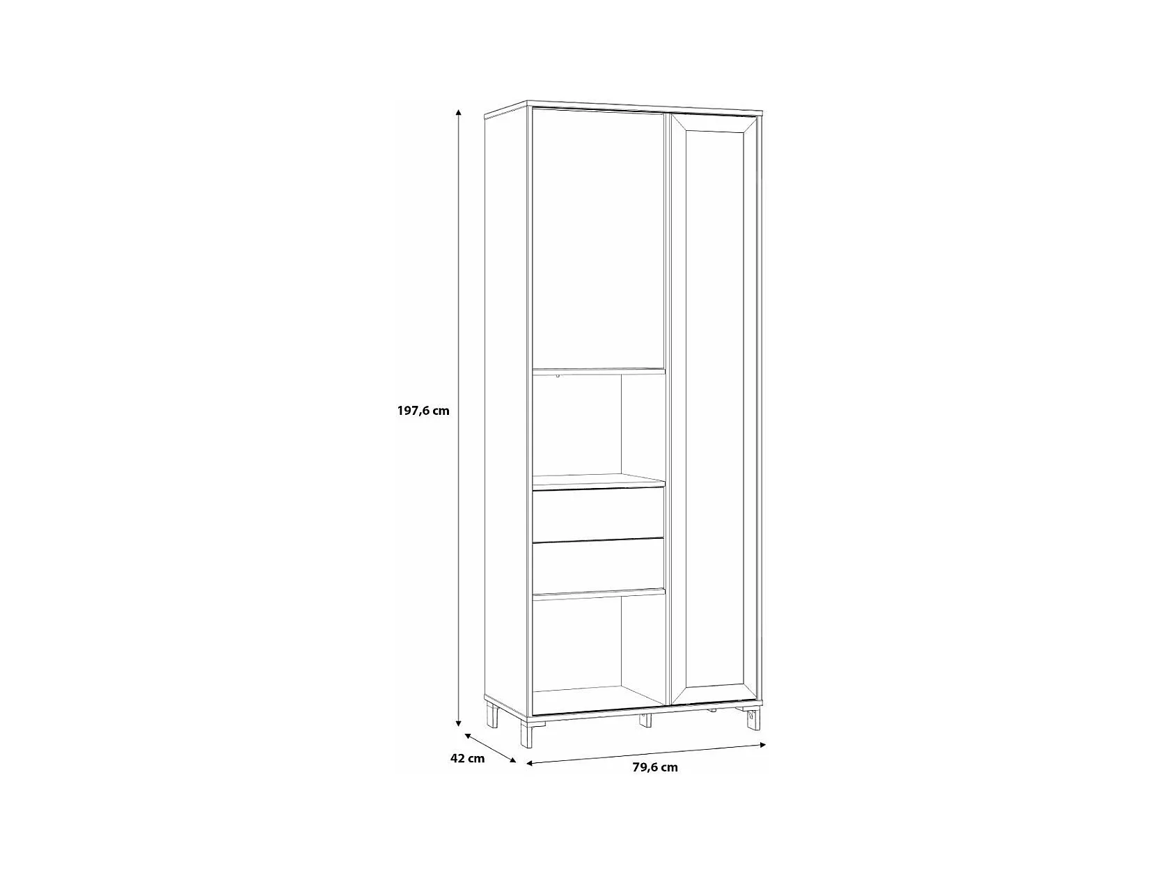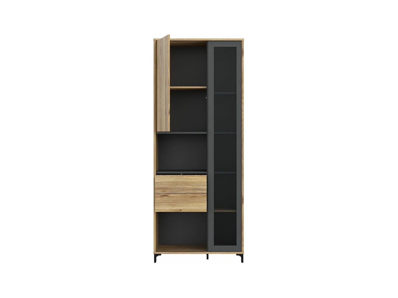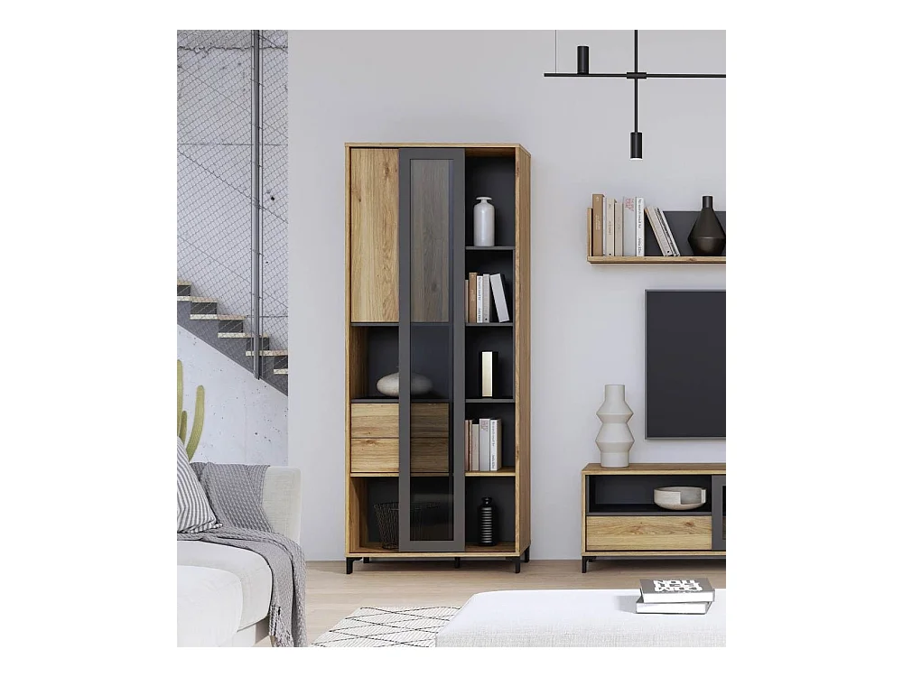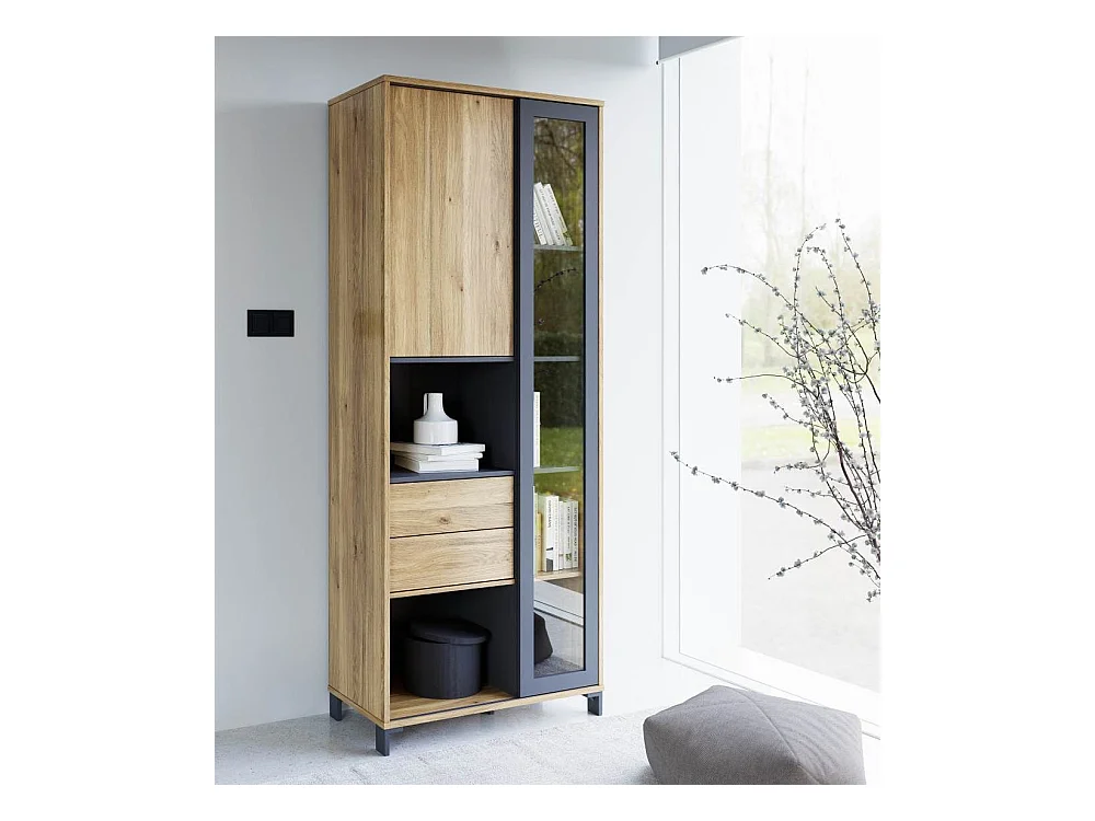 Vitrina alta de 198x78x42 cm con 1 puerta, 2 cajones y 7 espacios abiertos en beige Folke